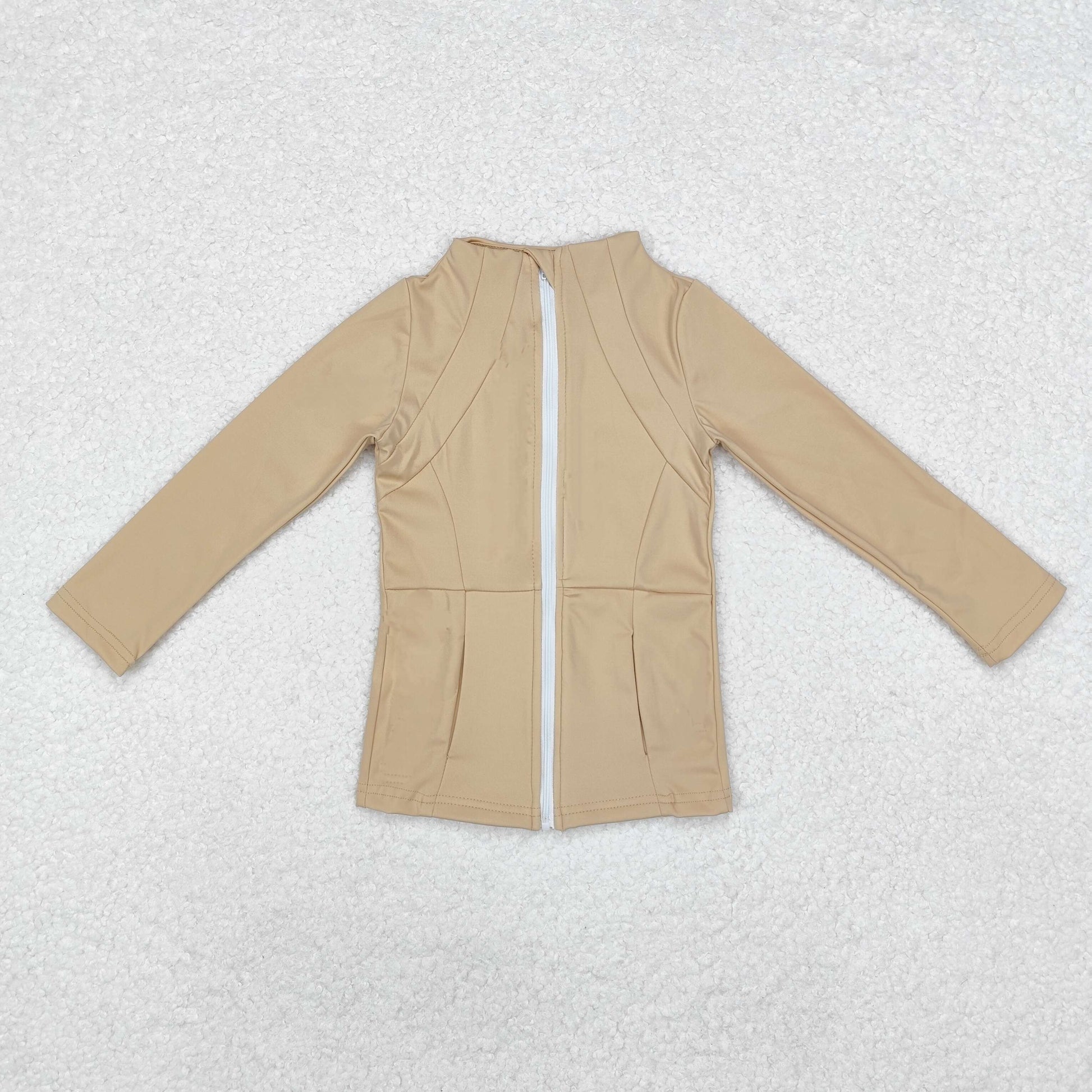 GT0681 Khaki Color Girls Yoga Wear Zipper Jackets Top