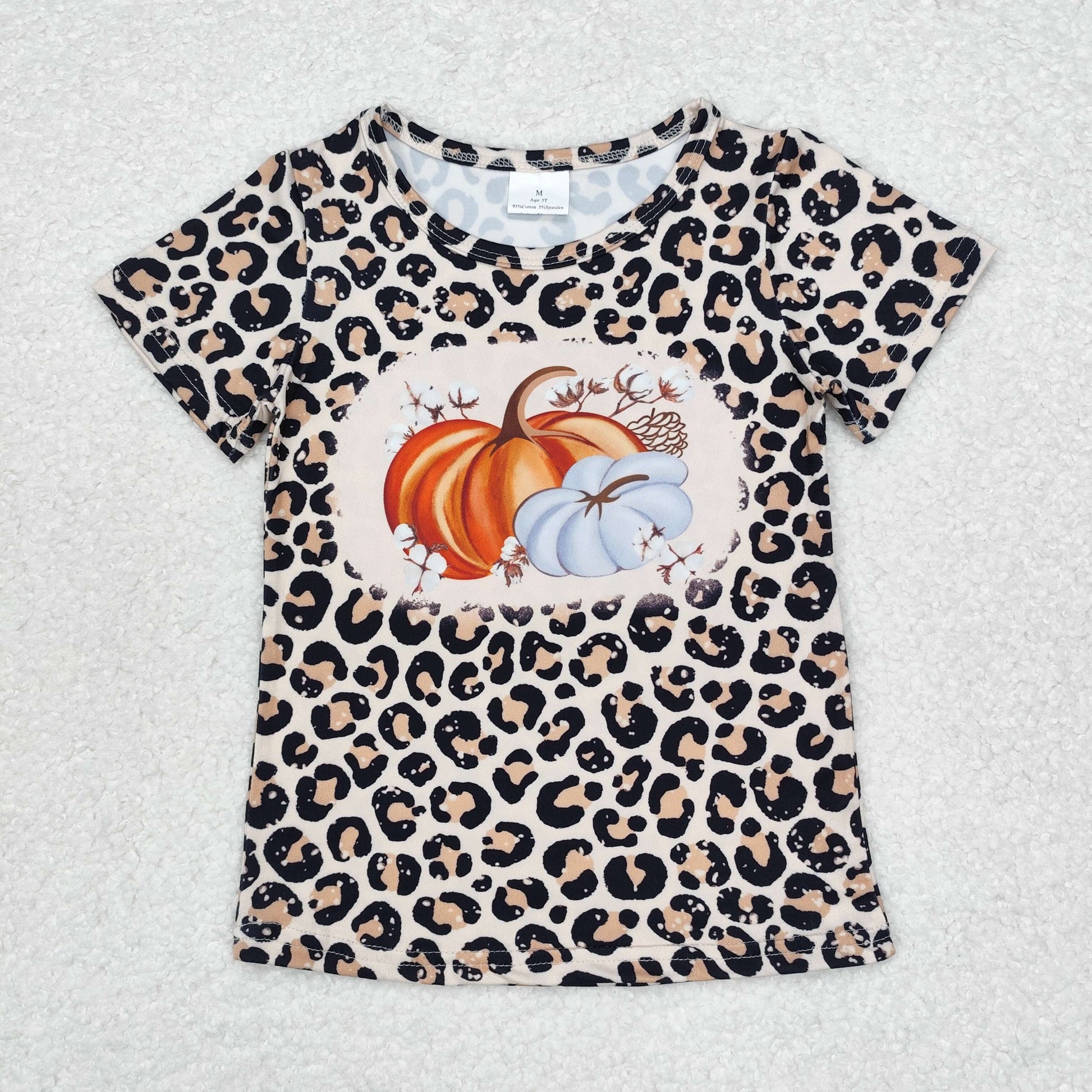 GT0688 Pumpkin Leopard Print Girls Fall Tee Shirts Top