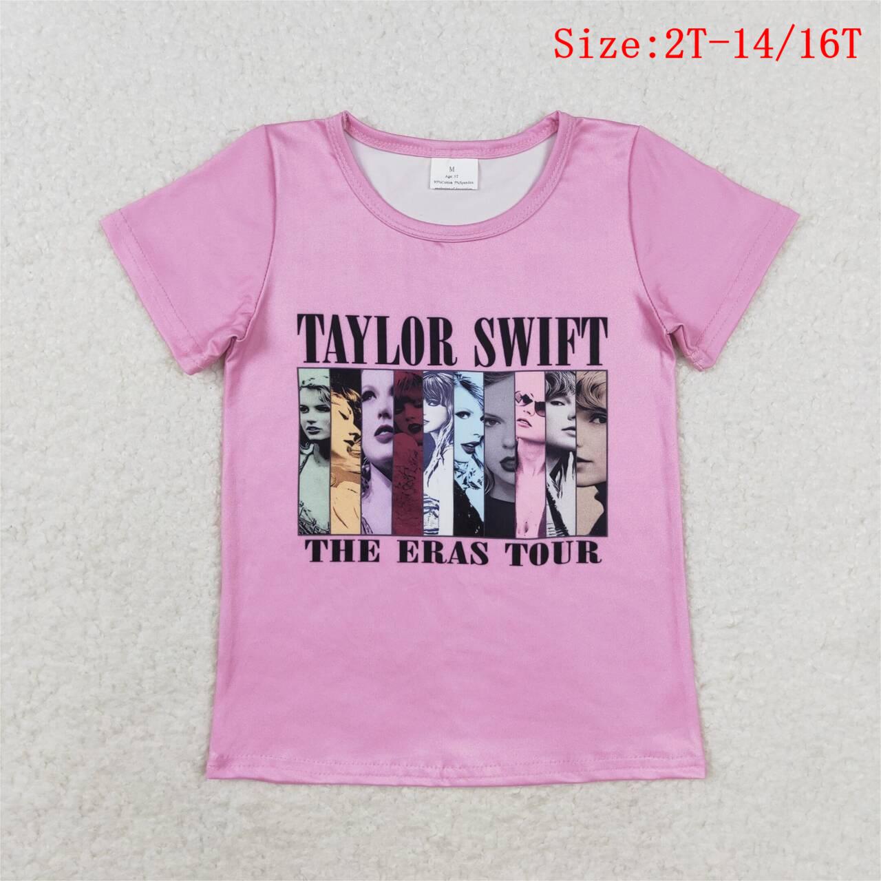 GT0690 Pink Singer Swiftie Print Girls Tee Shirts Top