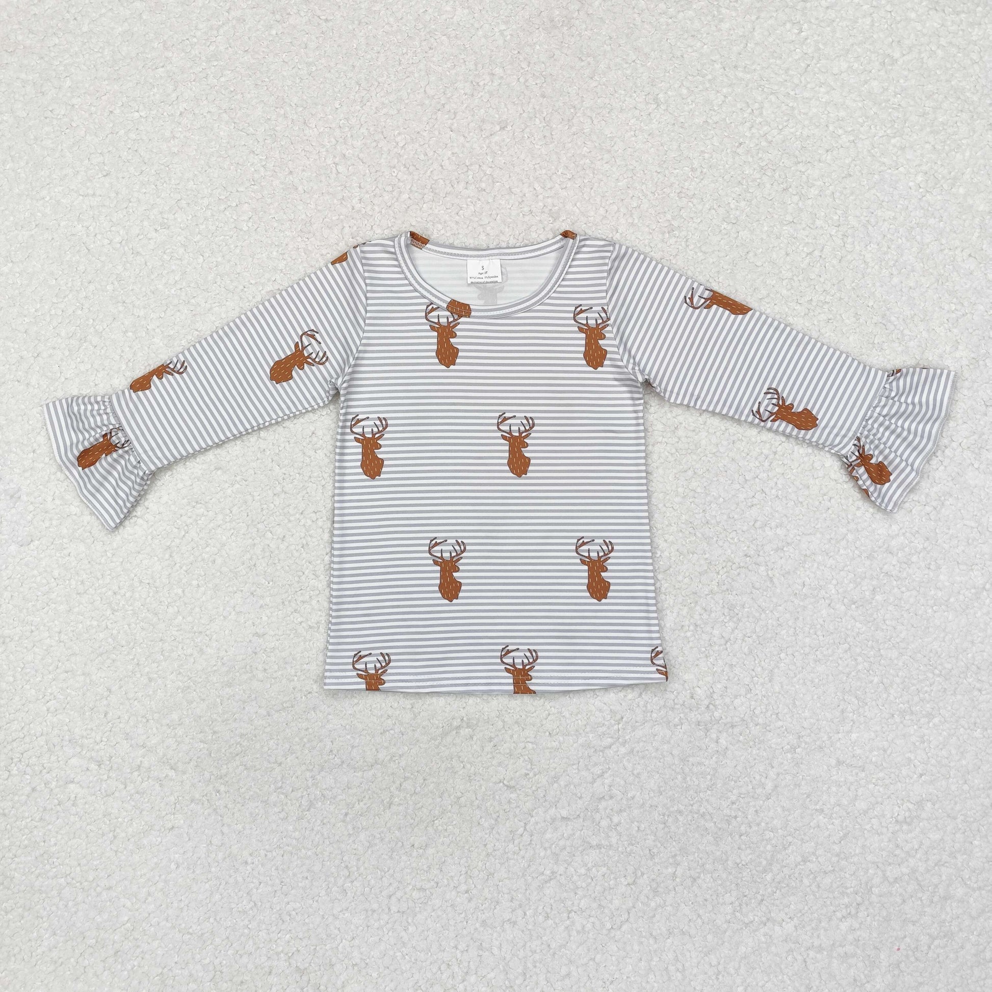 GT0739 Deer Stripes Print Girls Fall Tee Shirts Top