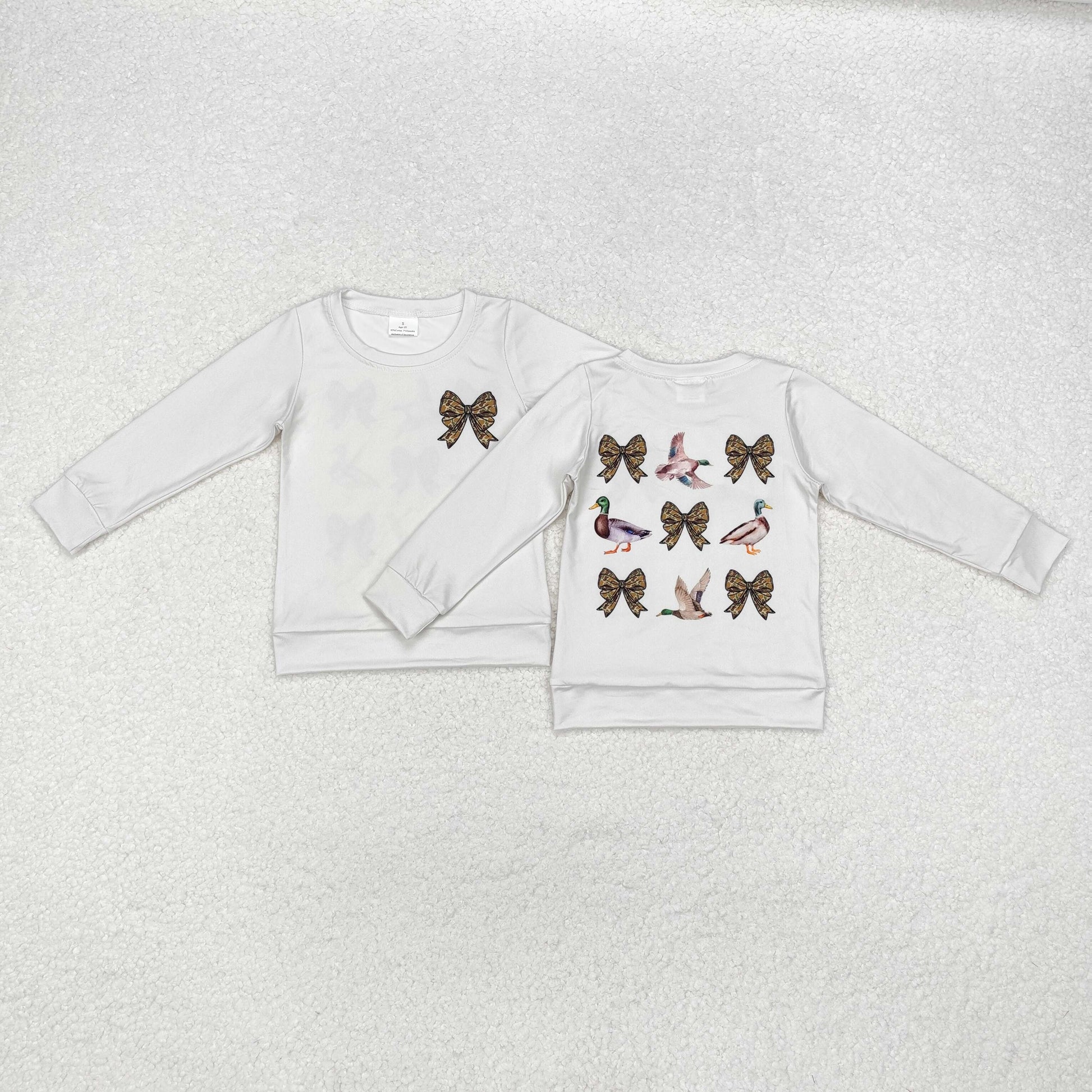 GT0759 Camo Bows Duck Print Girls Fall Tee Shirts Top