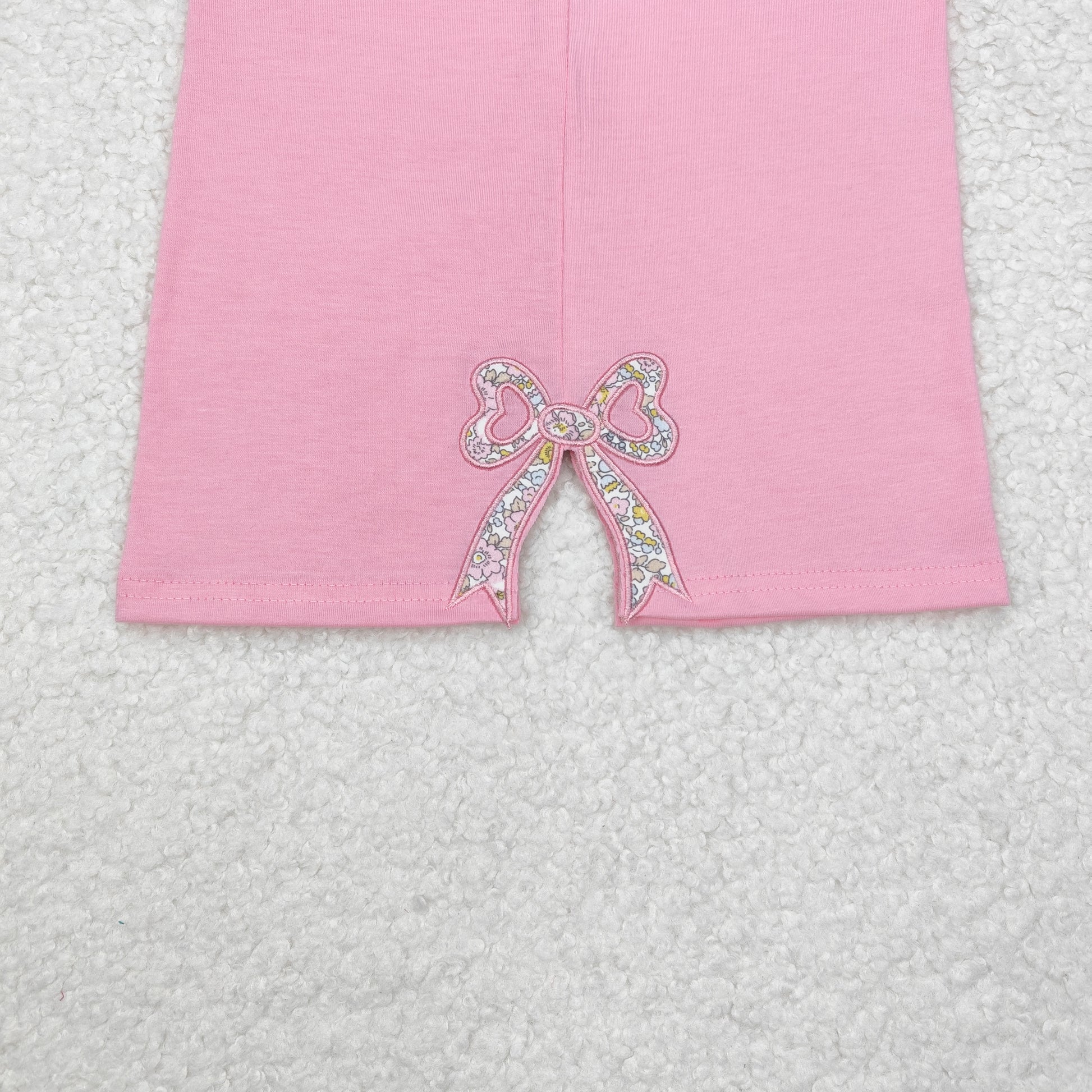 GT0872 Flowers Bow Embroidery Pink Girls Long Sleeve Tee Shirts Top