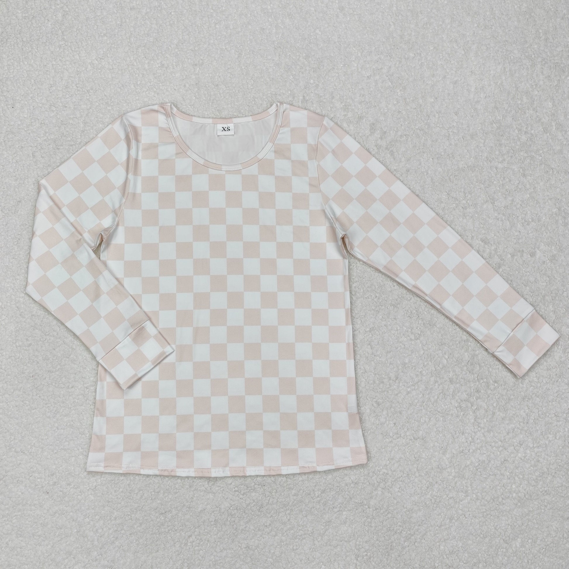 GT0906 Adult Yellow Plaid Print Woman Long Sleeve Tee Shirts Top