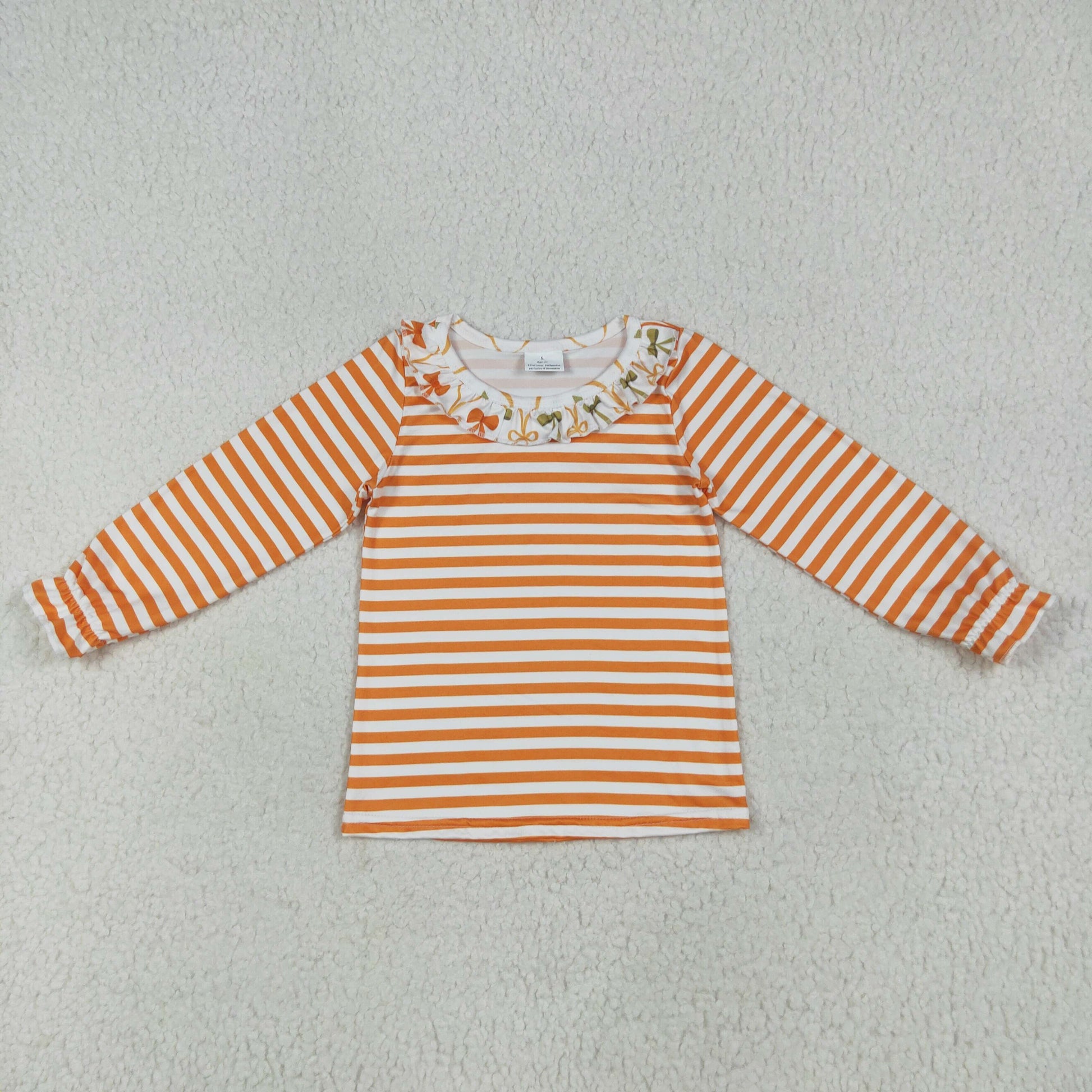 GT1074 Orange Stripes Print Girls Fall Tee Shirts Top