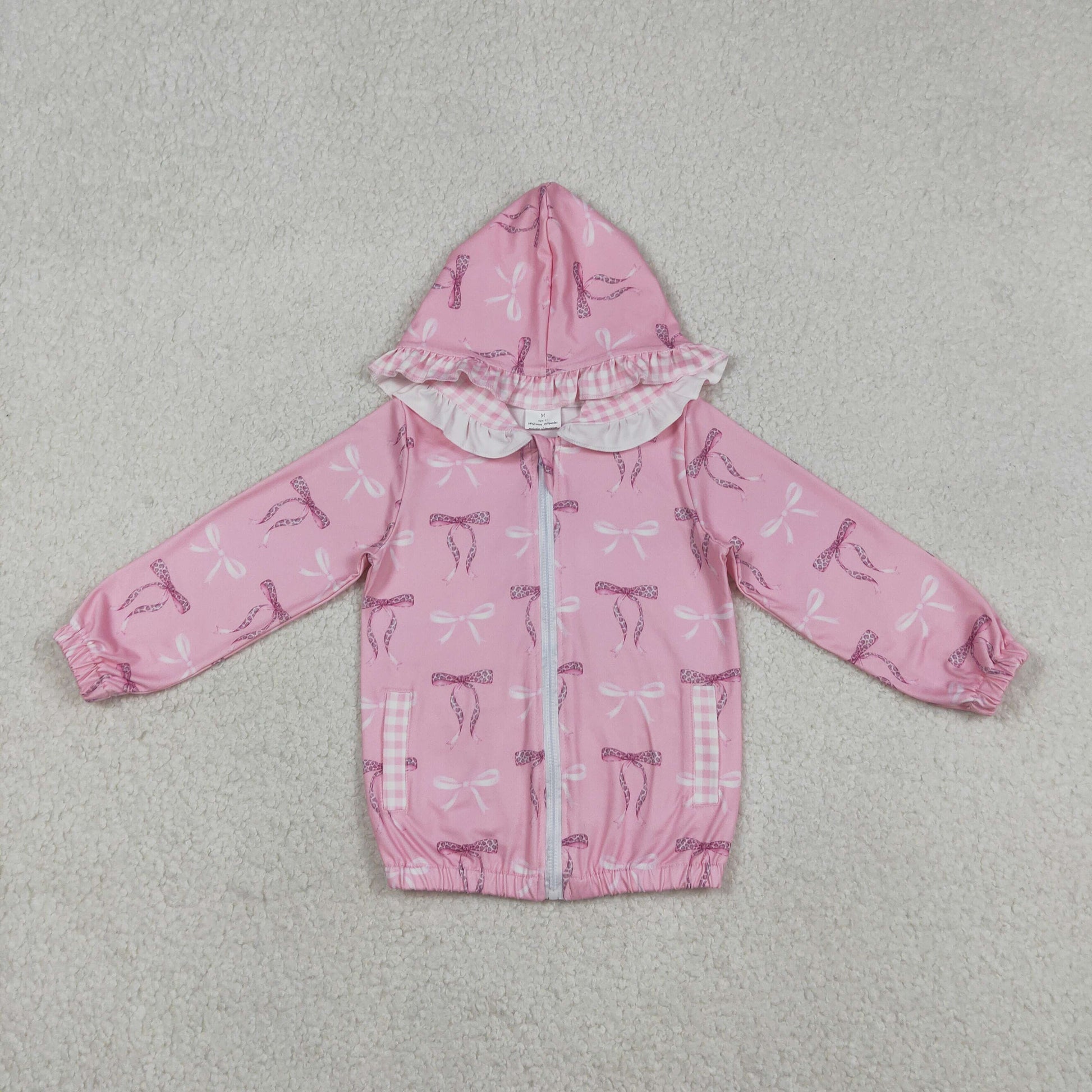 GT1217 Pink Bows Print Girls Zipper Pockets Hoodie Jacket Top