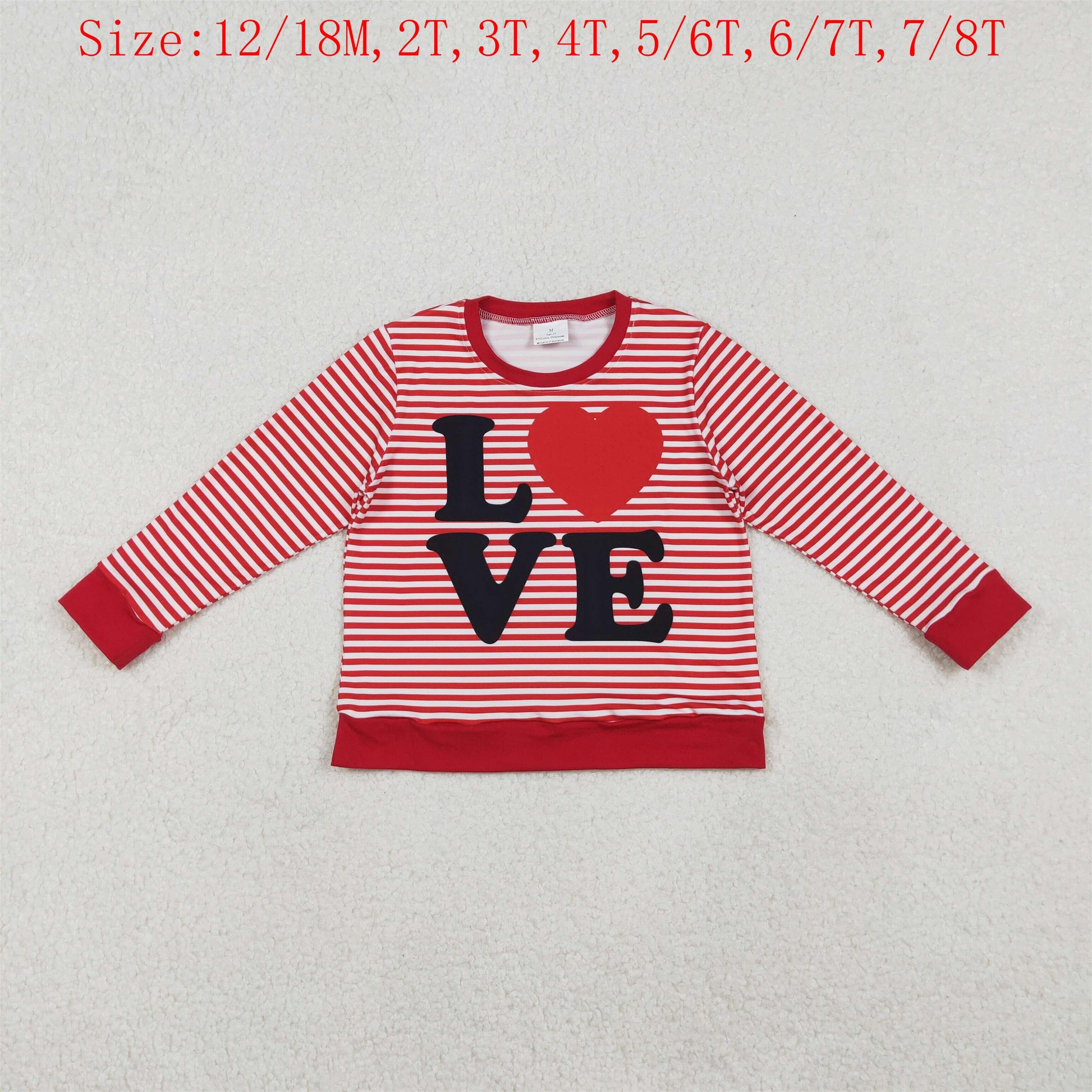 GT1235 LOVE Heart Red Stripes Print Girls Valentine's Day Long Sleeve Tee Shirts Top