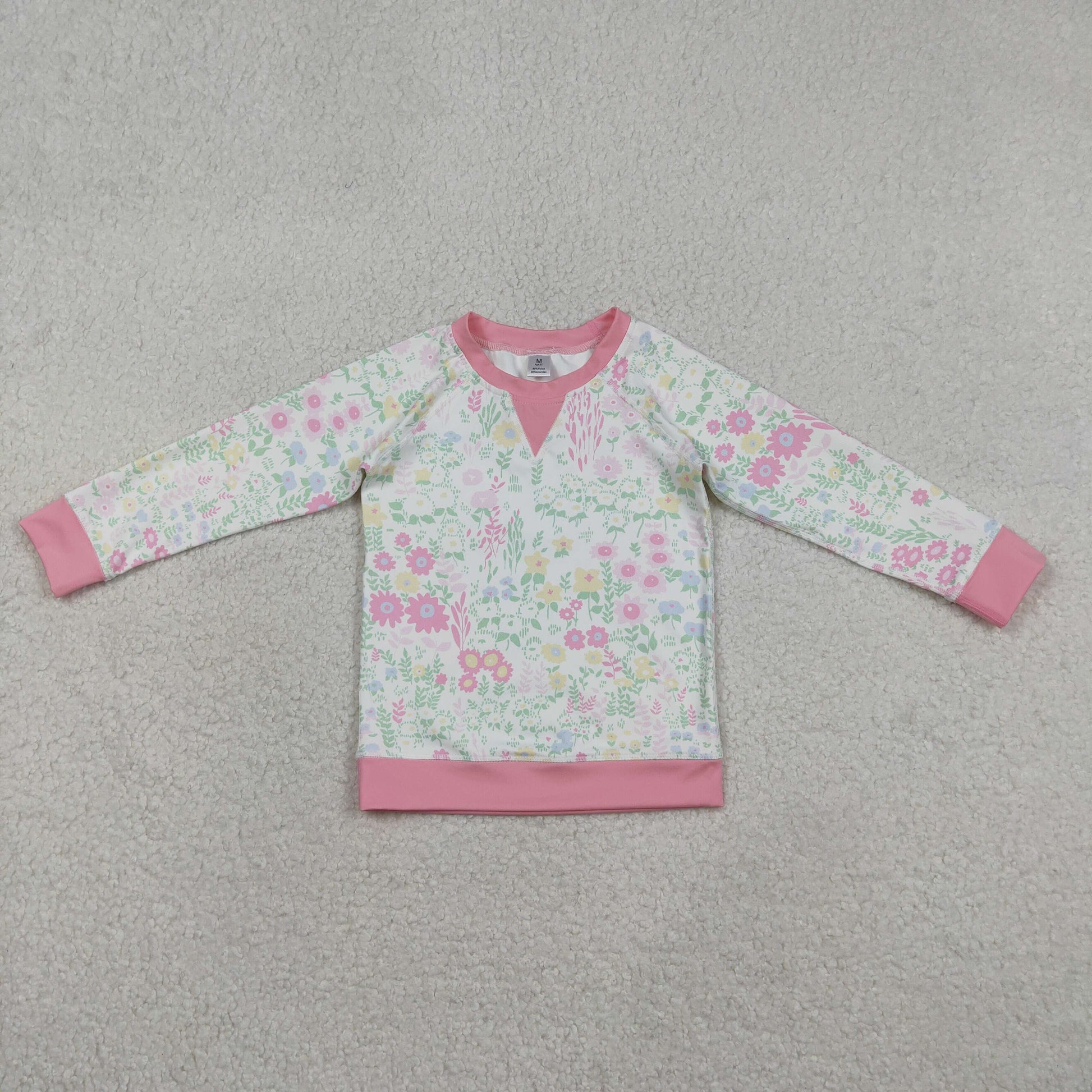 GT1299 Pink Flowers Print Girls Long Sleeve Yoga Tee Shirts Top