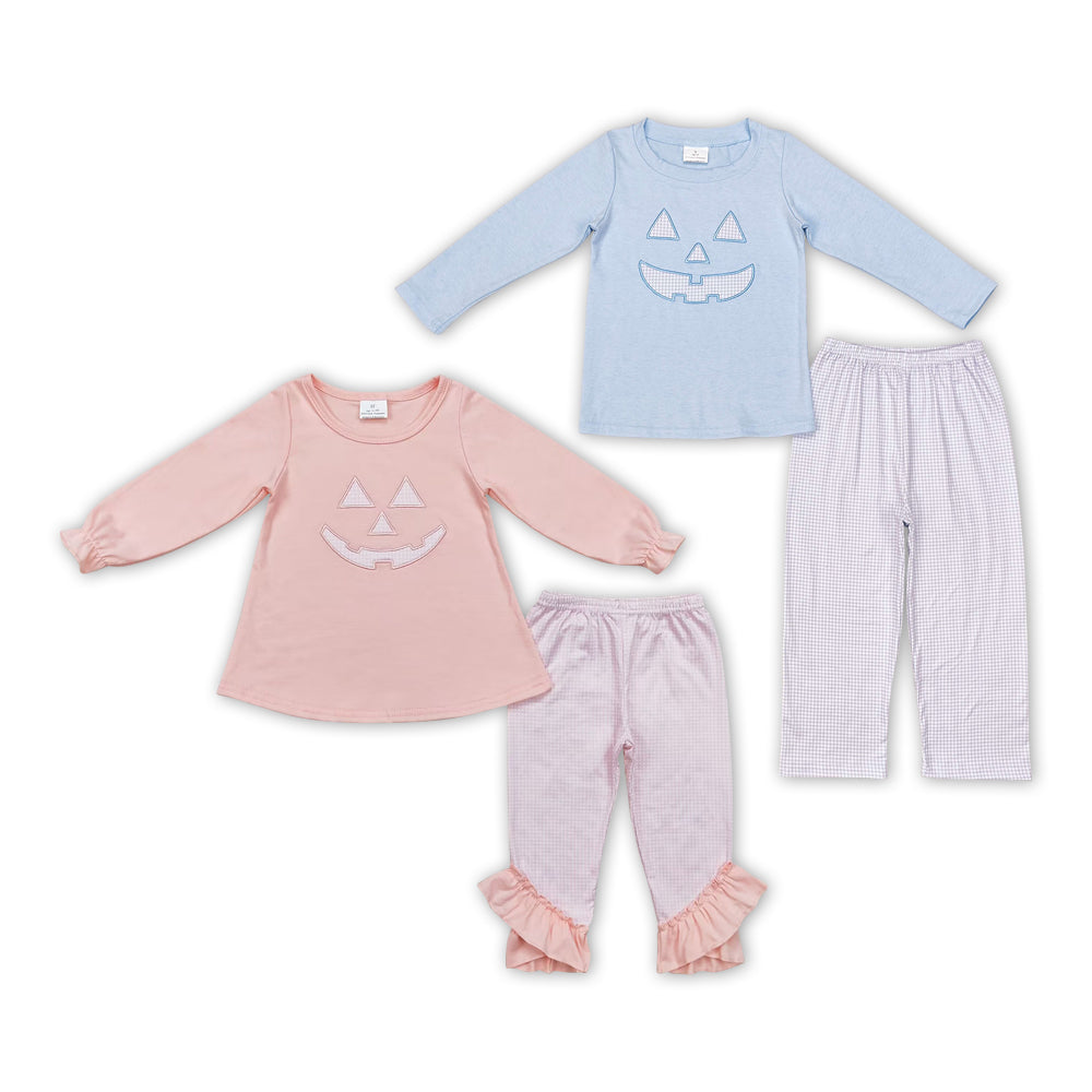 Halloween Ghost Face Embroidery Top Plaid Pants Sibling Matching Clothes