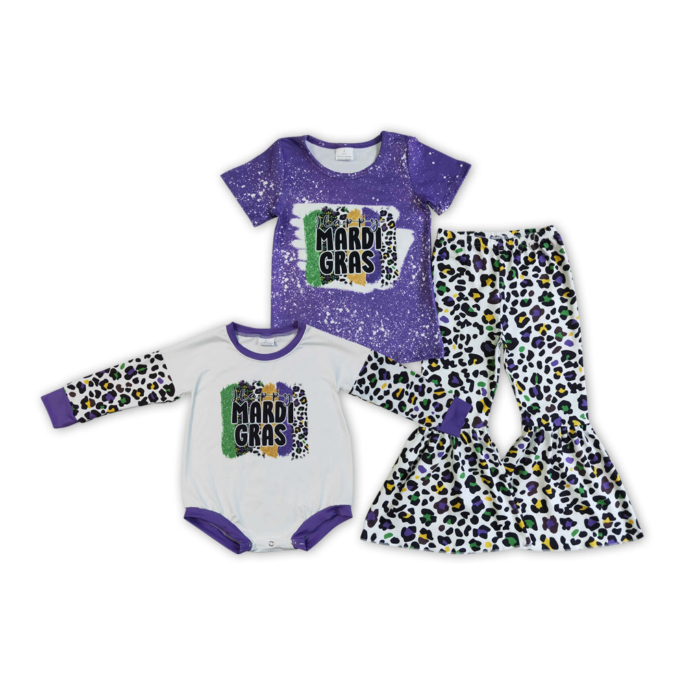 Happy Mardi Gras Leopard Print Sisters Matching Clothes