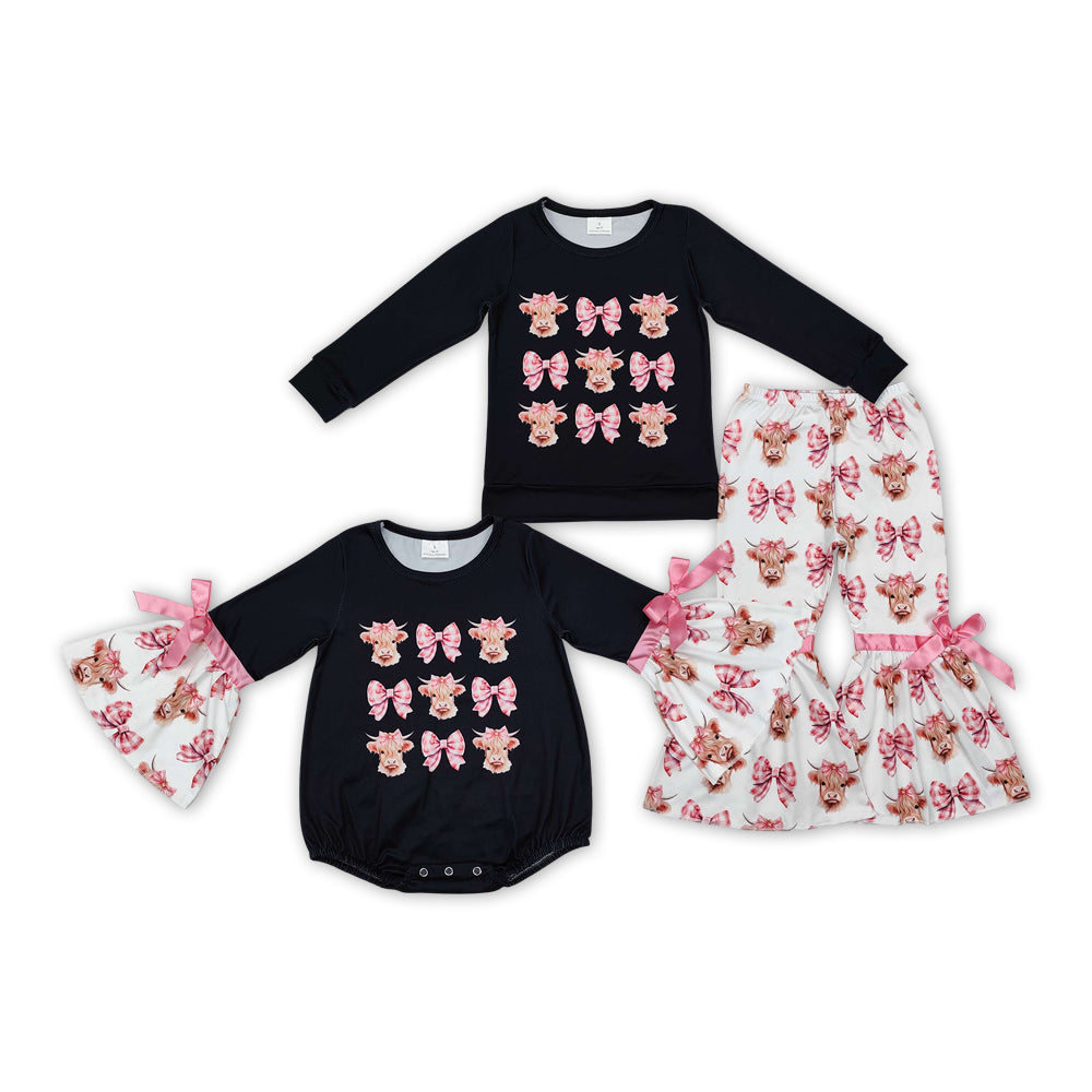 Highland Cow Bows Print Sisters Western Matching Clothes