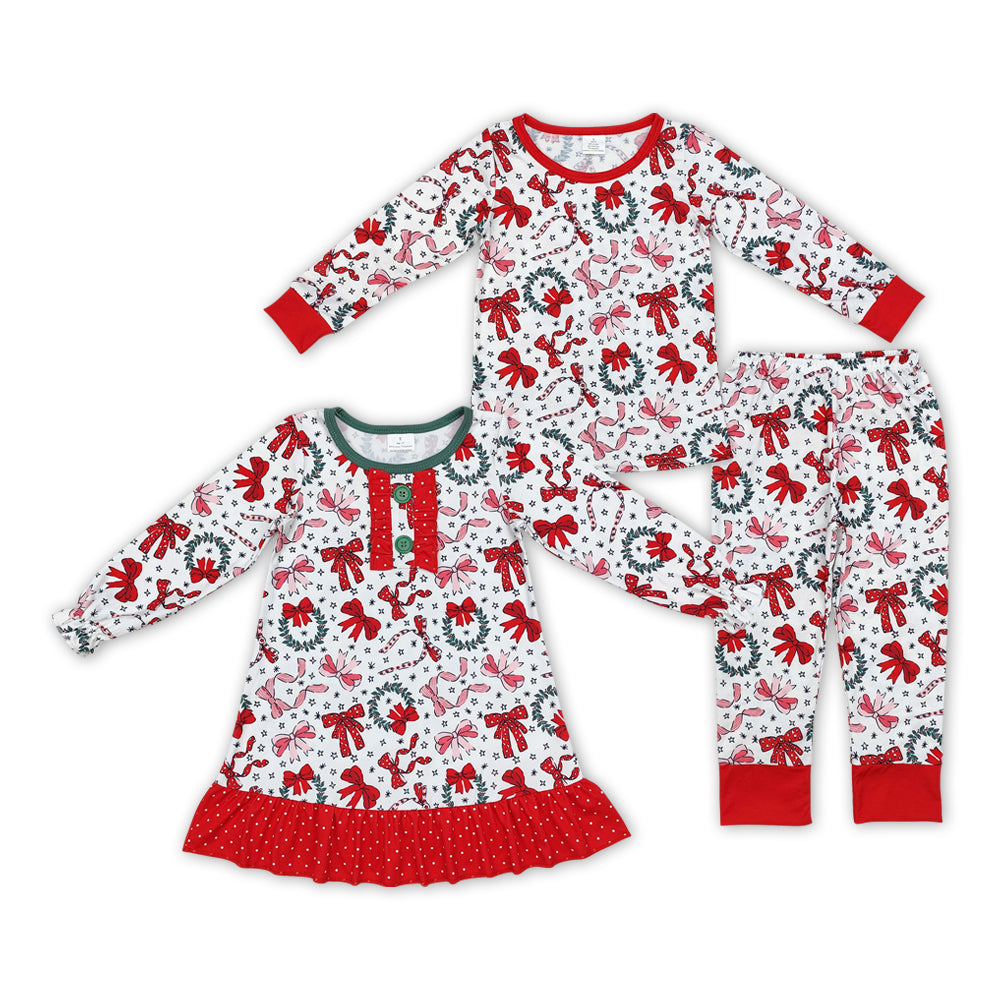 Holly Red Bows Print Sisters Christmas Pajamas Clothes