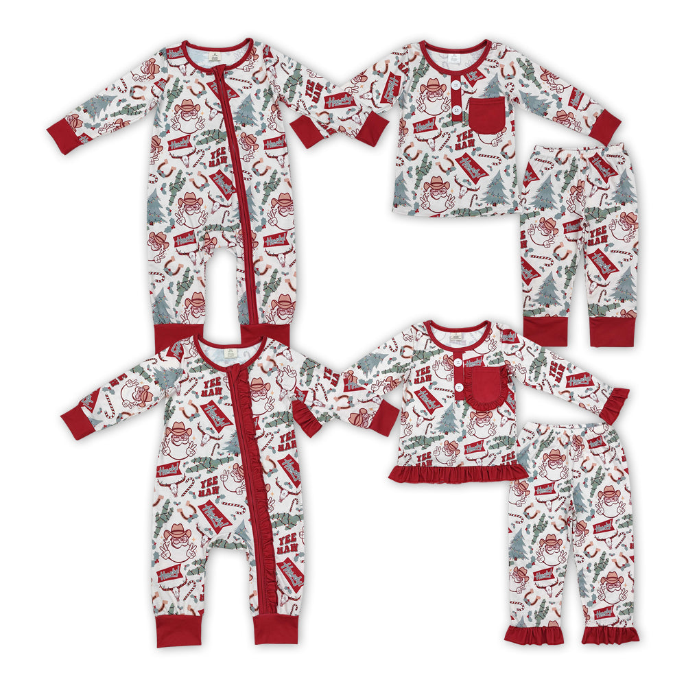 Howdy Santa Print Sibling Christmas Bamboo Pajamas Matching Clothes