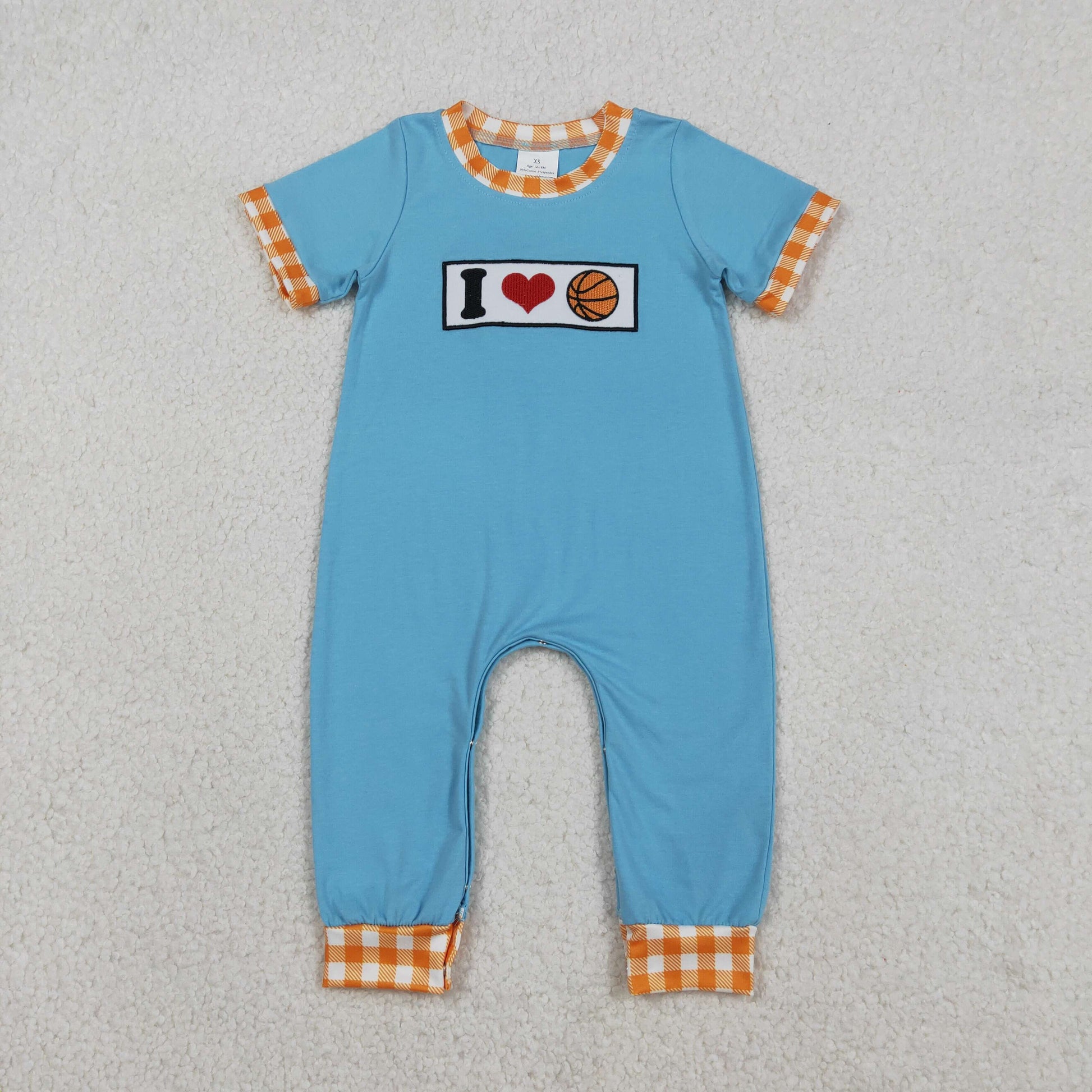 I LOVE Basketball Embroidery Blue Boys Matching Clothes Brothers Wear