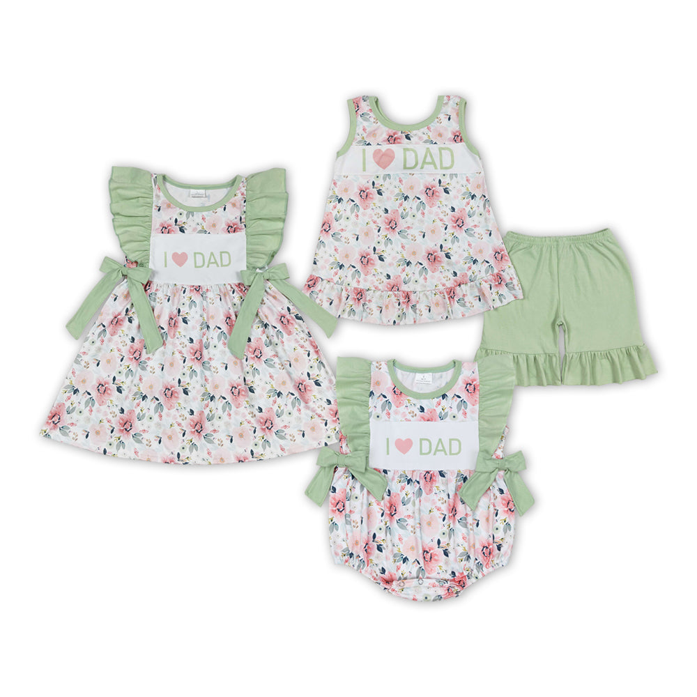 I LOVE DAD Flowers Print Sisters Summer Matching Clothes