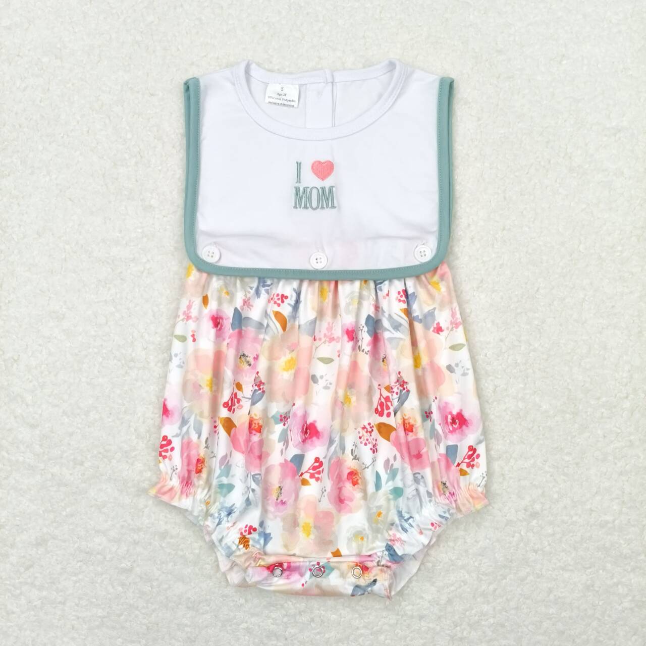 I LOVE DAD& MOM Embroidery Flowers Print Baby Girls Summer Buttons Romper Sisters Wear
