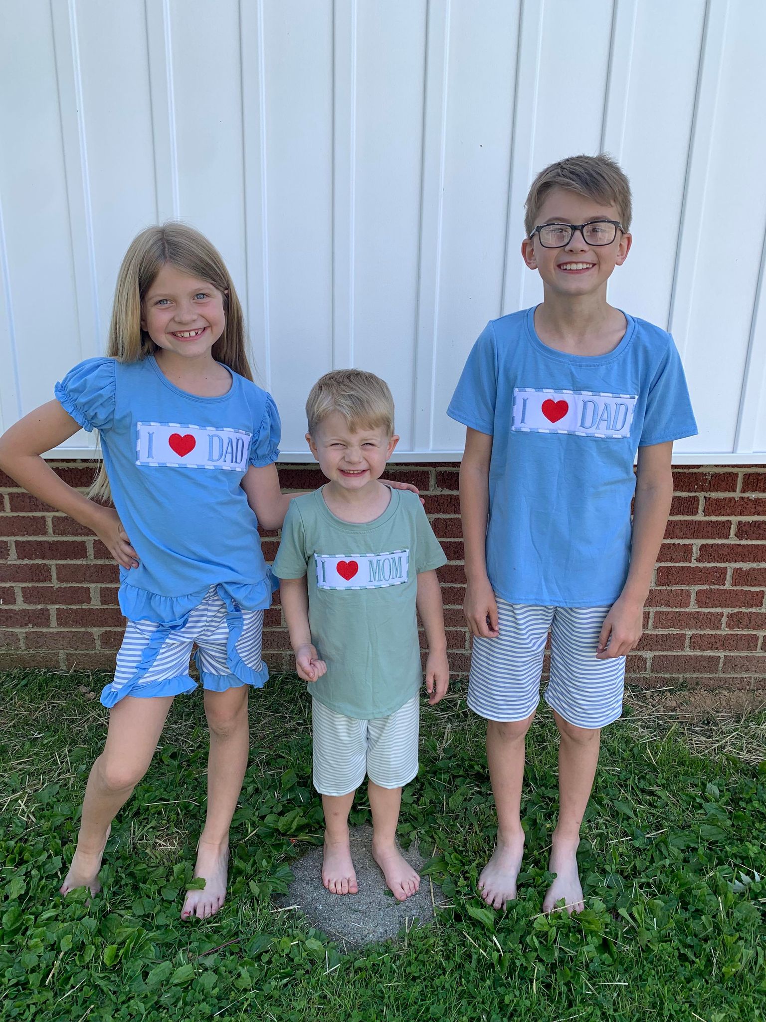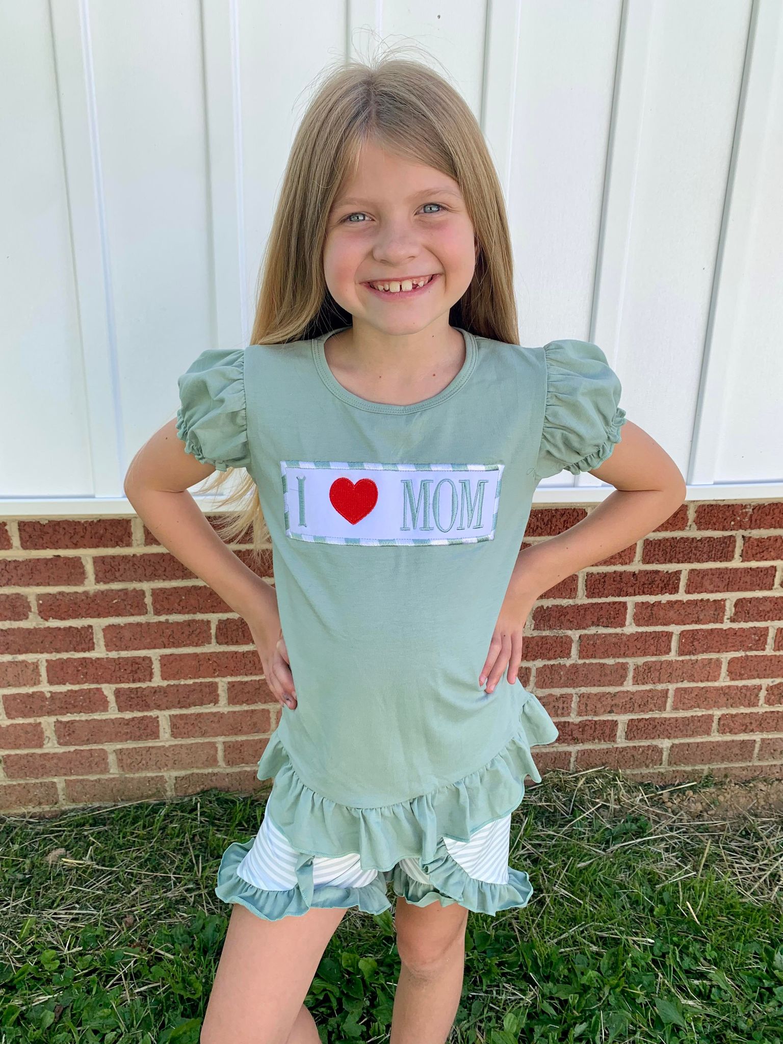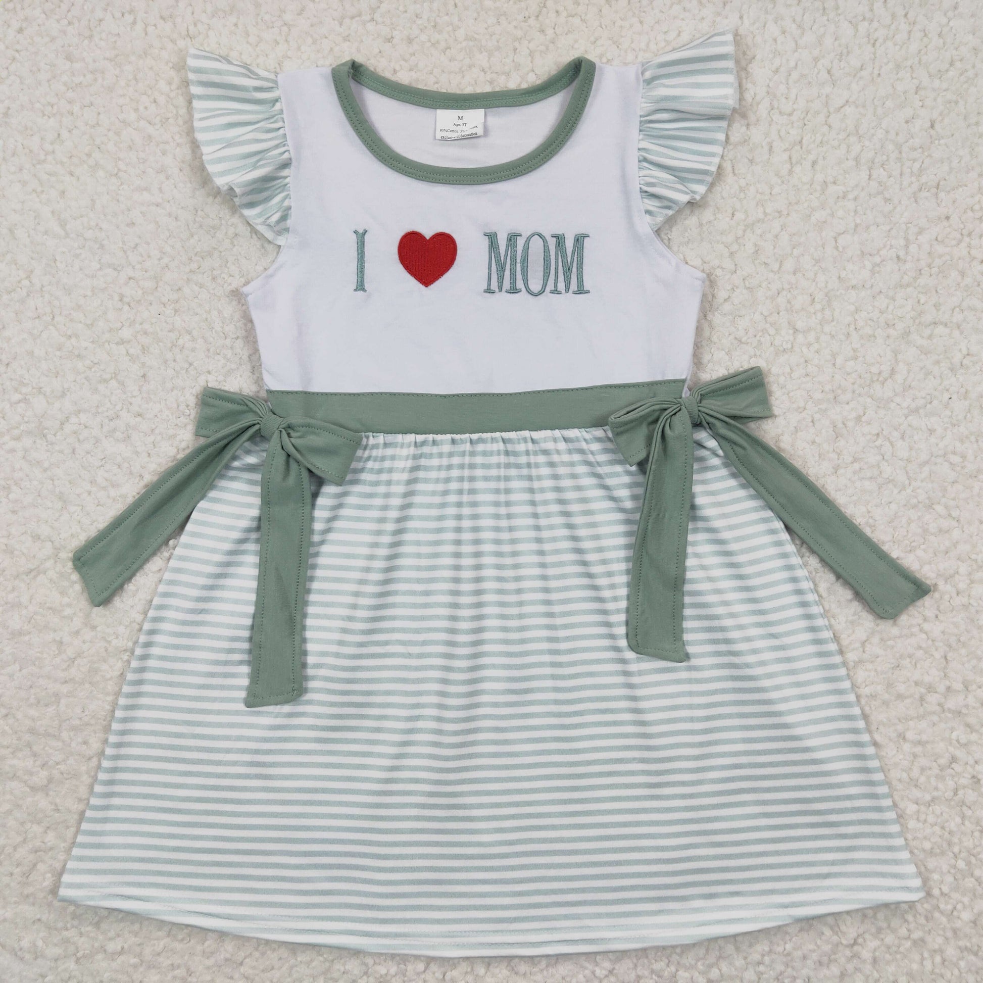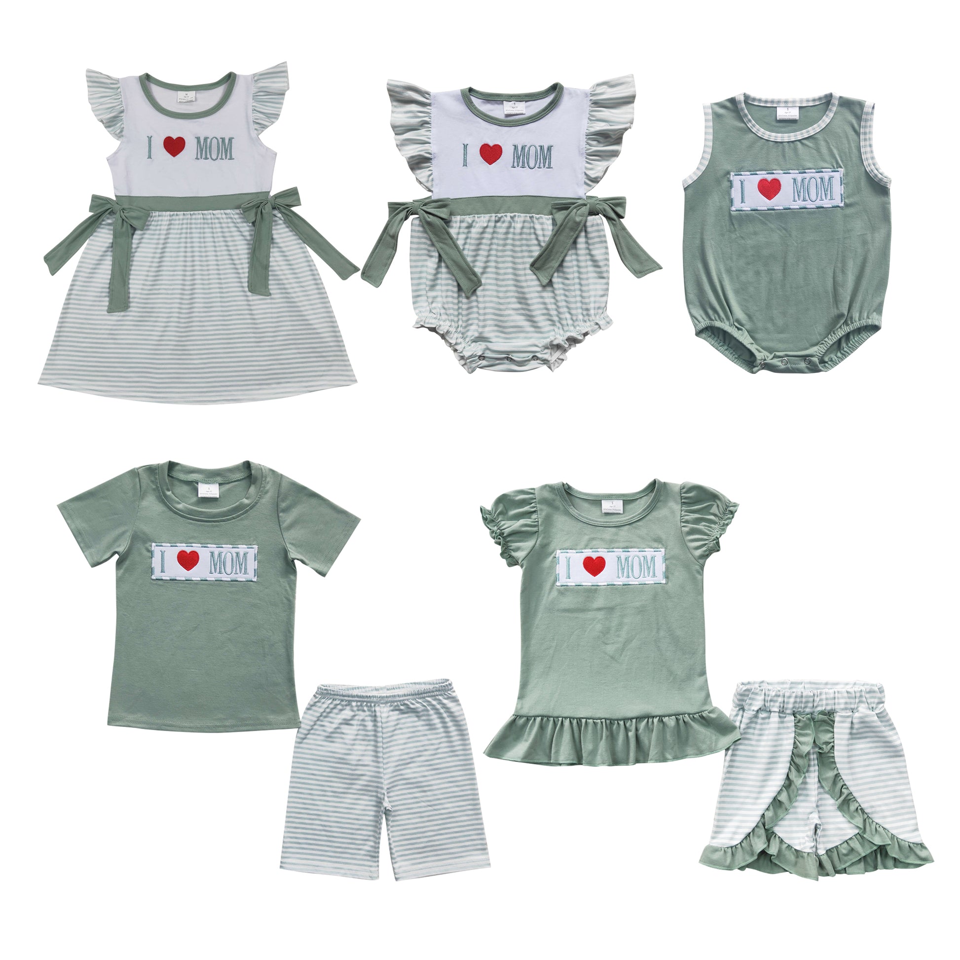 I LOVE MOM Embroidery Green Print Sibling Mother's Day Matching Clothes