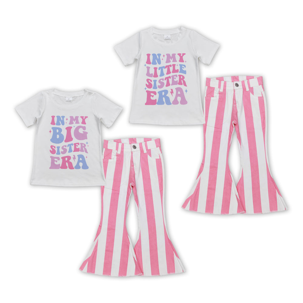 In My Little/Big Sister ERA Top Pink Stripes Denim Bell Jeans Girls Clothes Set