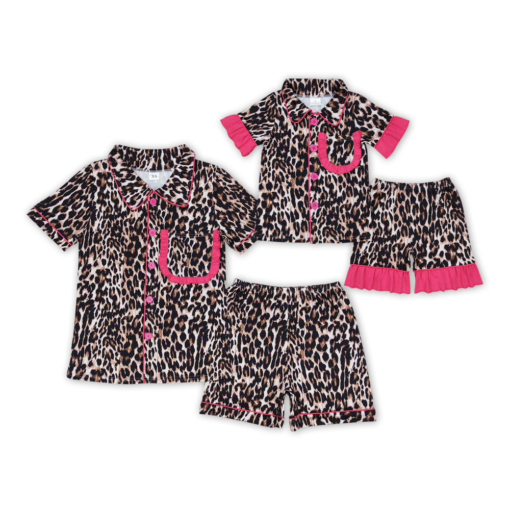 Leopard Print Mom and Me Matching Summer Pajamas Clothes Set
