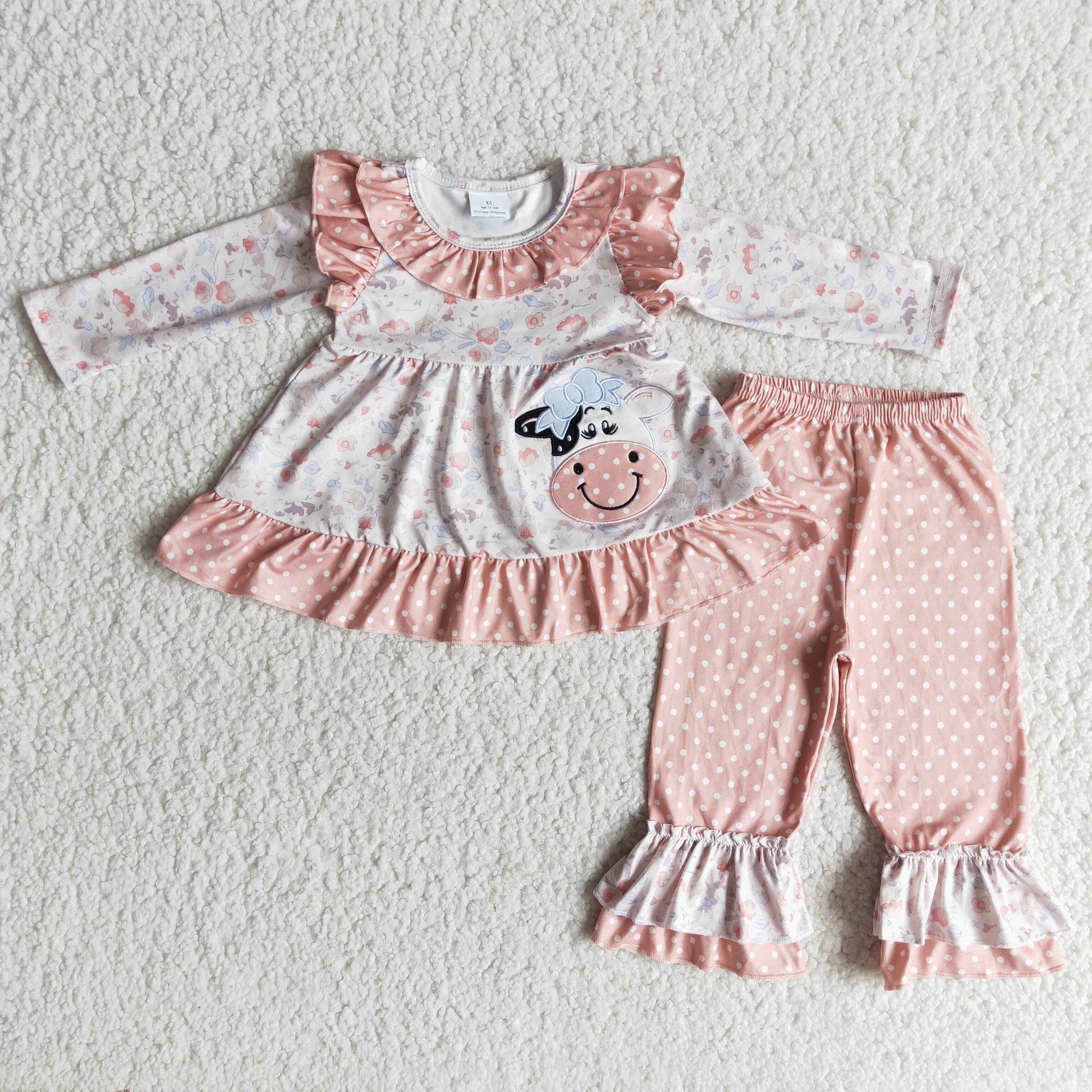 (Promotion)6 A26-30 Long sleeve tunic cow embroideried outfits