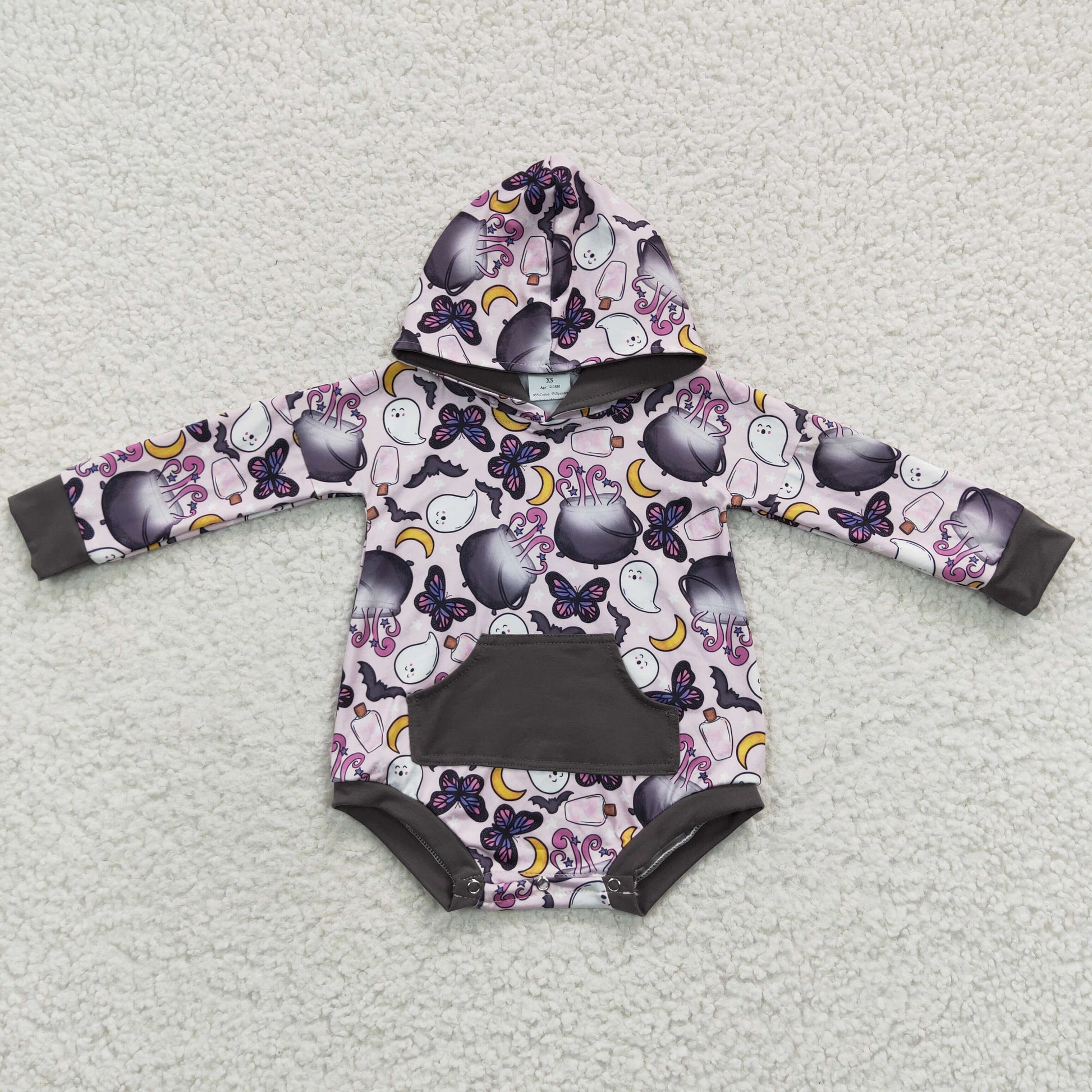 LR0274 Baby girls long sleeve butterfly hoodie Halloween romper