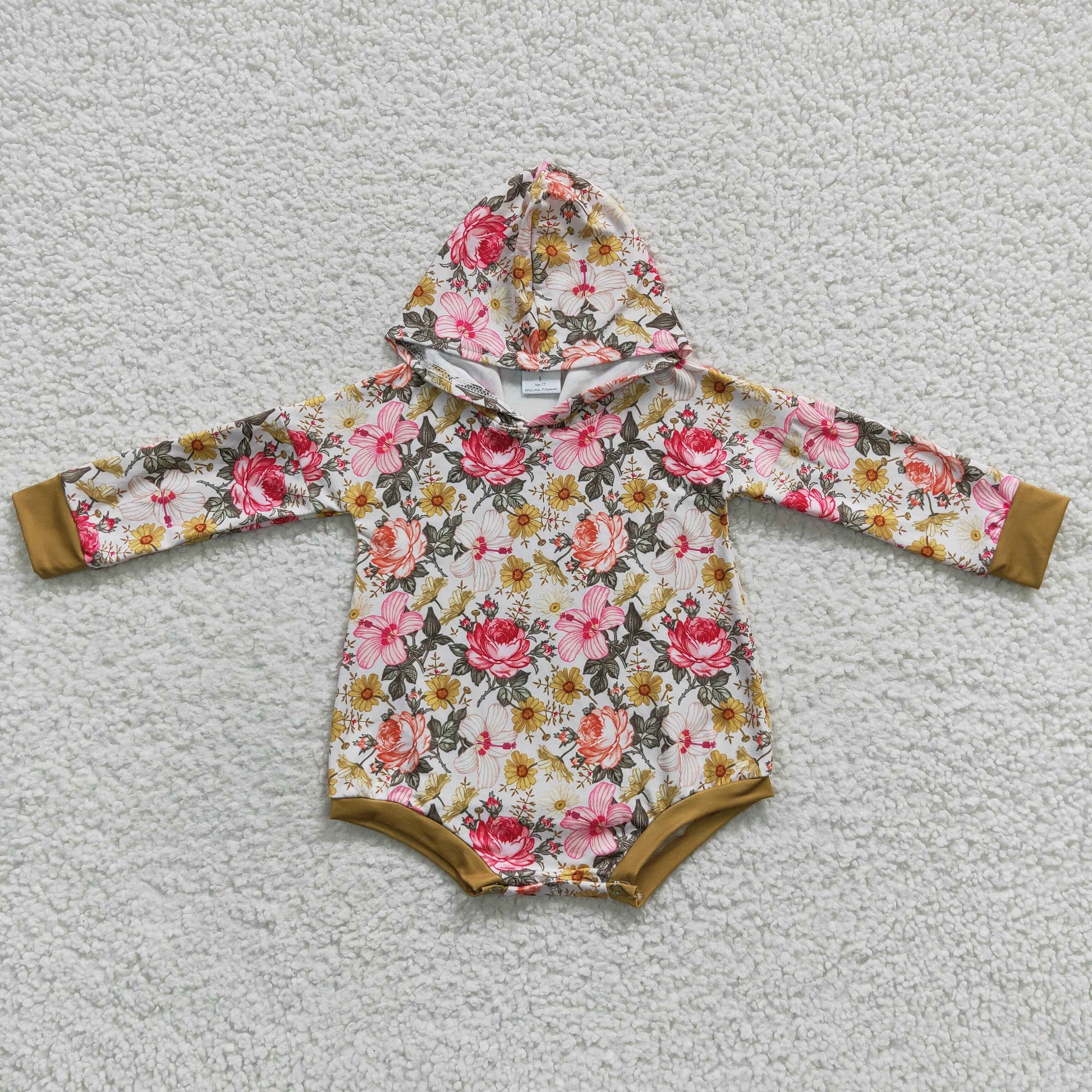 LR0299 Baby girls long sleeve flowers hoodie romper