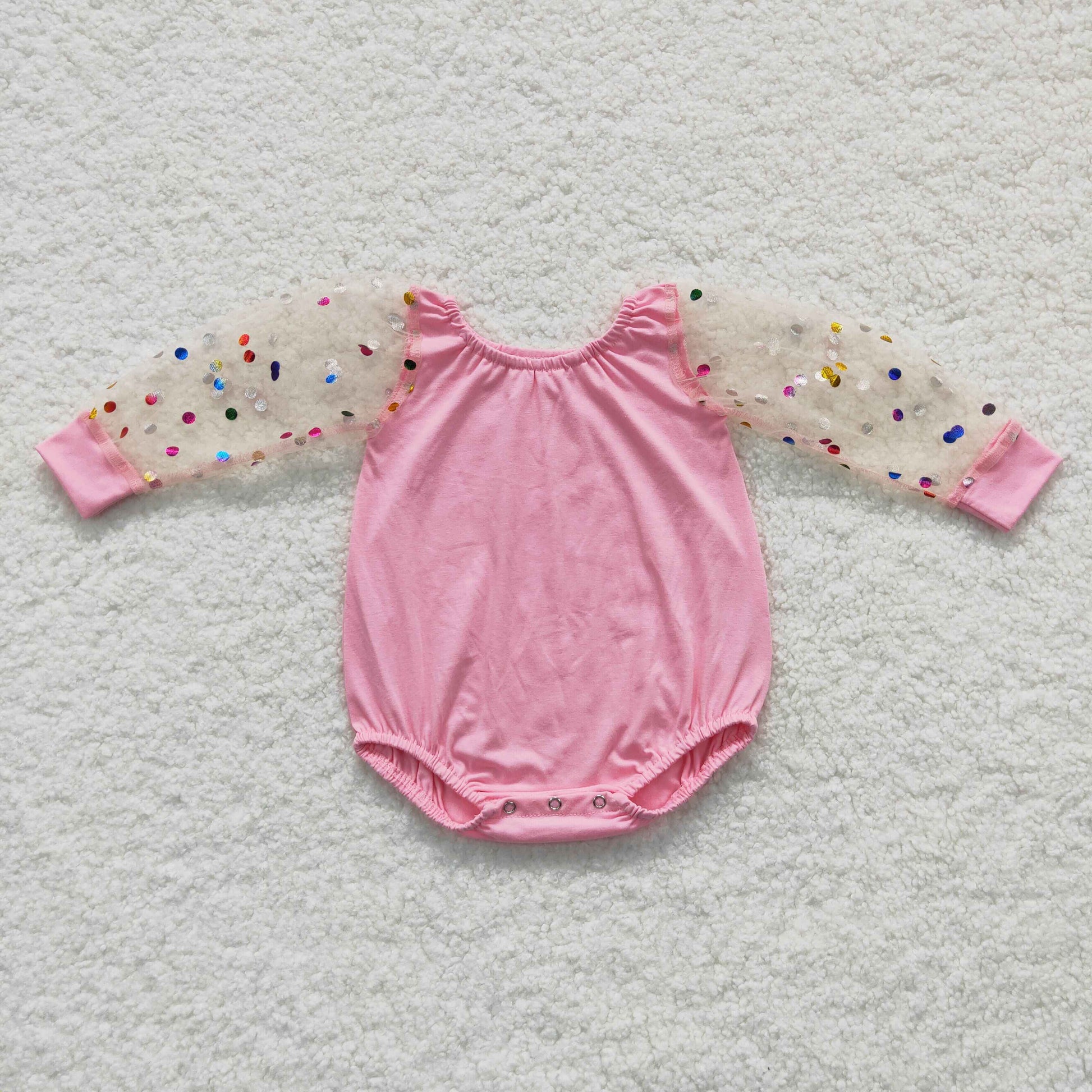 LR0466 Pink tulle long sleeve baby girls romper