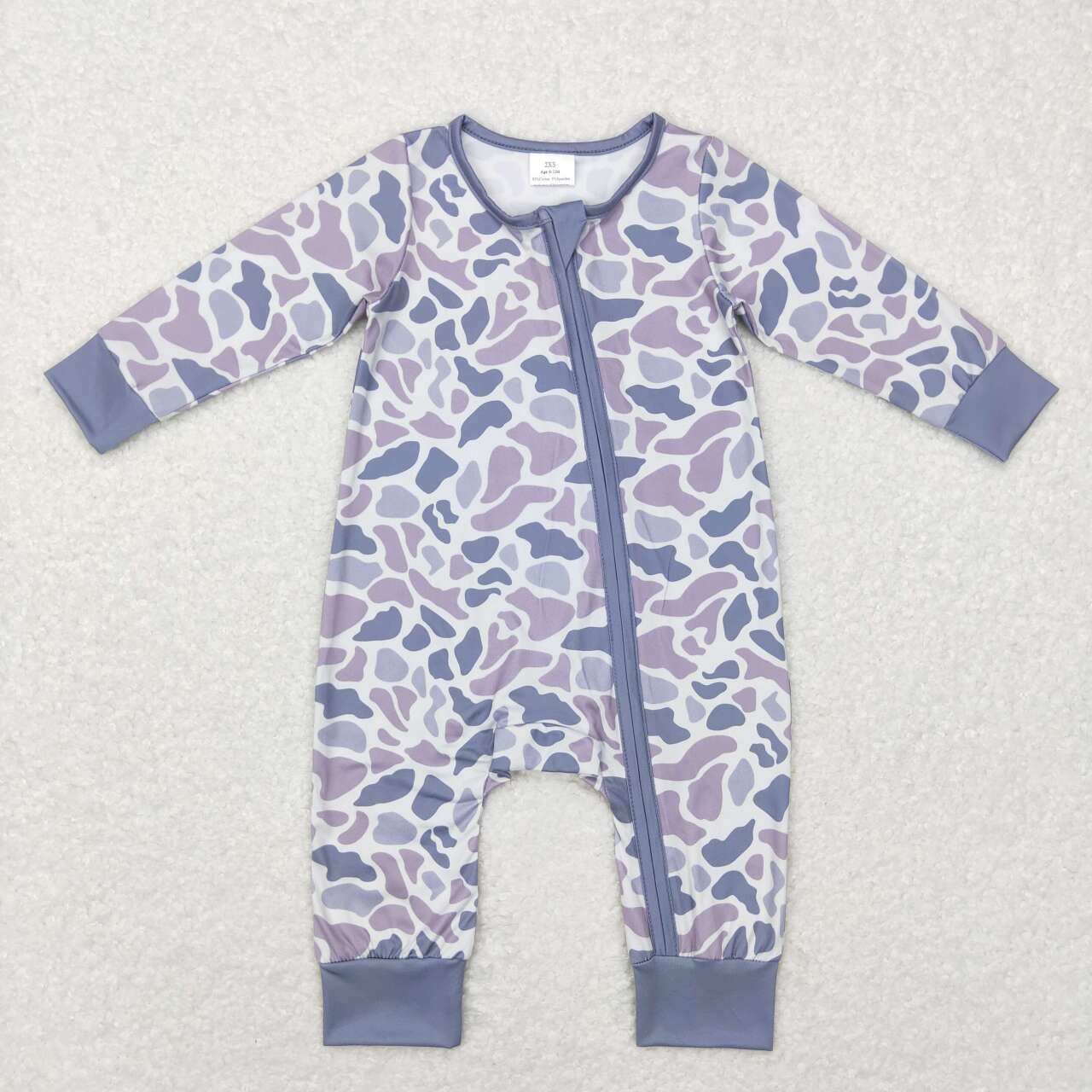 LR0819 Grey Camo Print Baby Boys Sleeper Zipper Romper