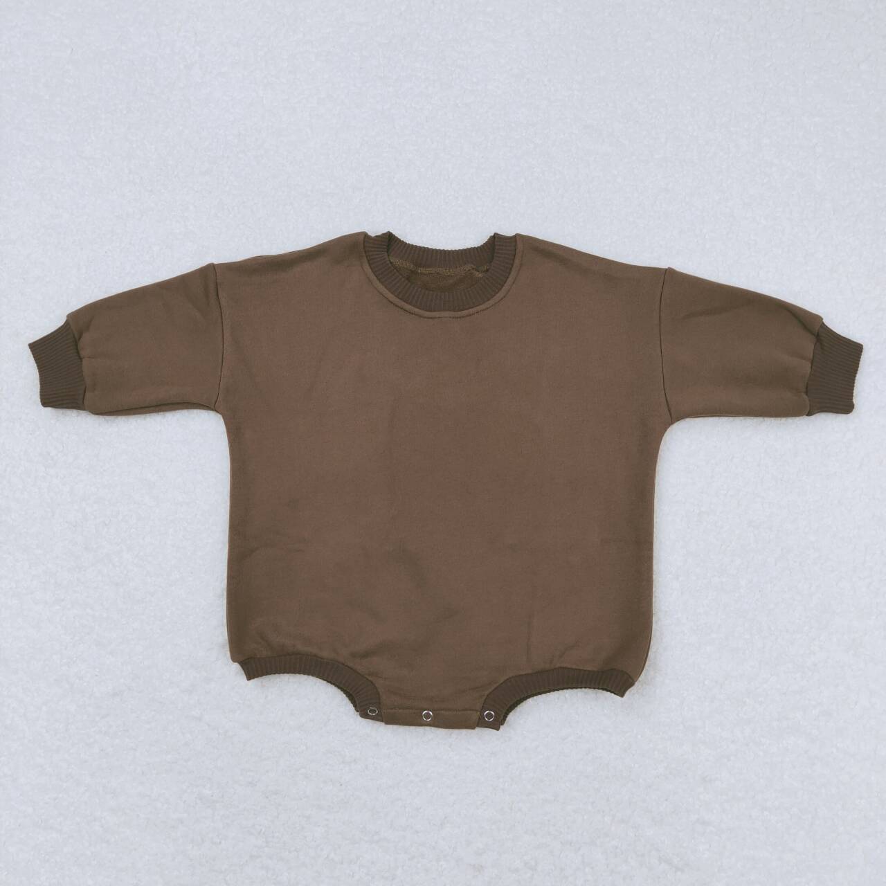 LR0952 Brown Color Cotton Long Sleeve Baby Sweatshirt Romper