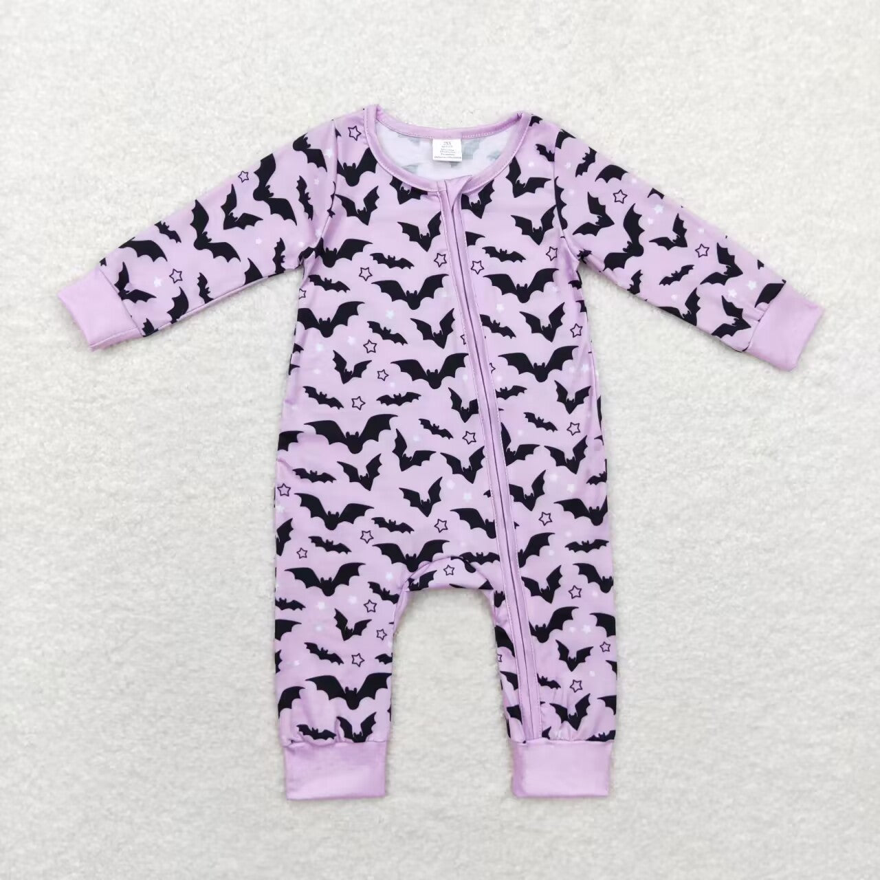 LR1097 Purple Bat Print Baby Girls Halloween Bamboo Sleeper Zipper Romper
