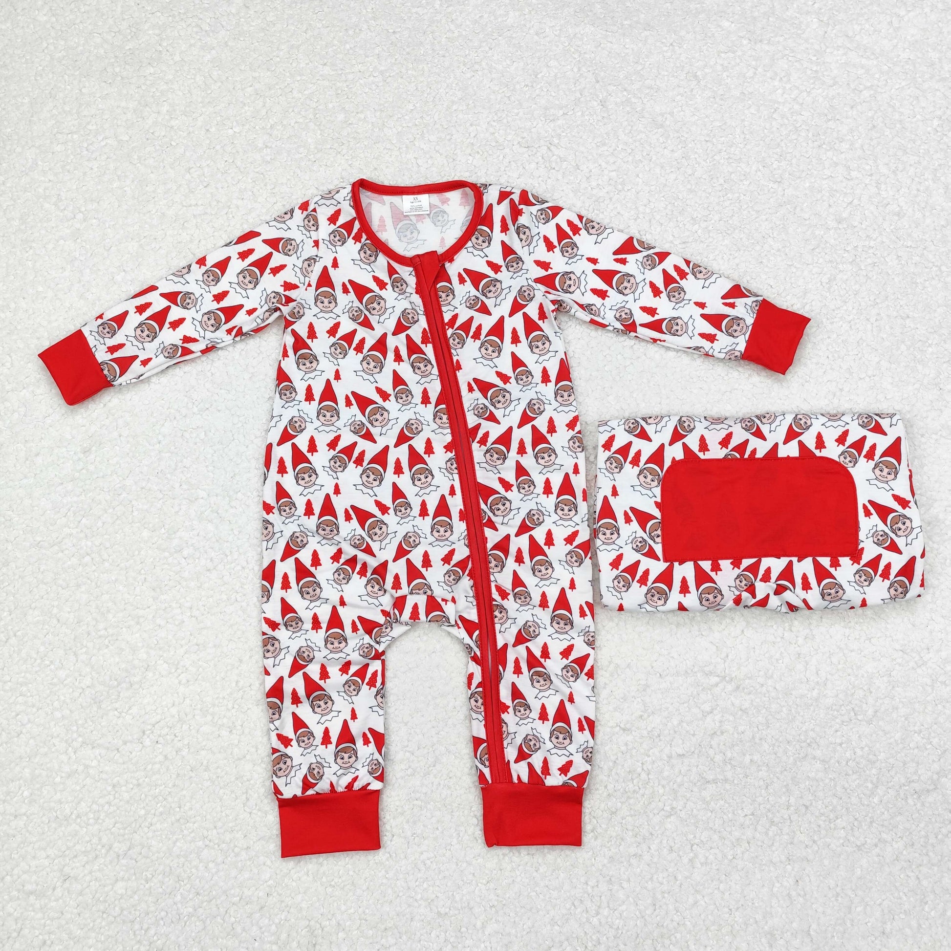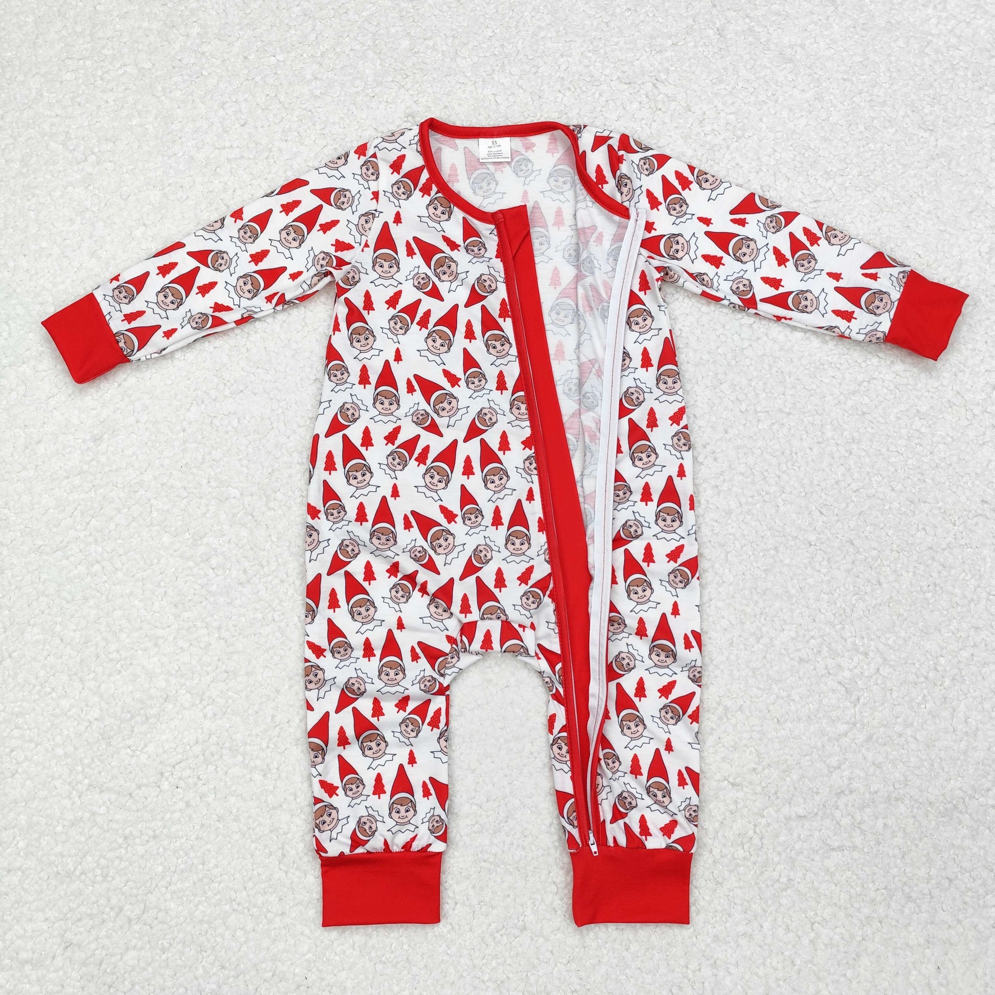 LR1168 Cartoon Shelf Cute Spirit Print Baby Boys Christmas Bamboo Sleeper Zipper Romper