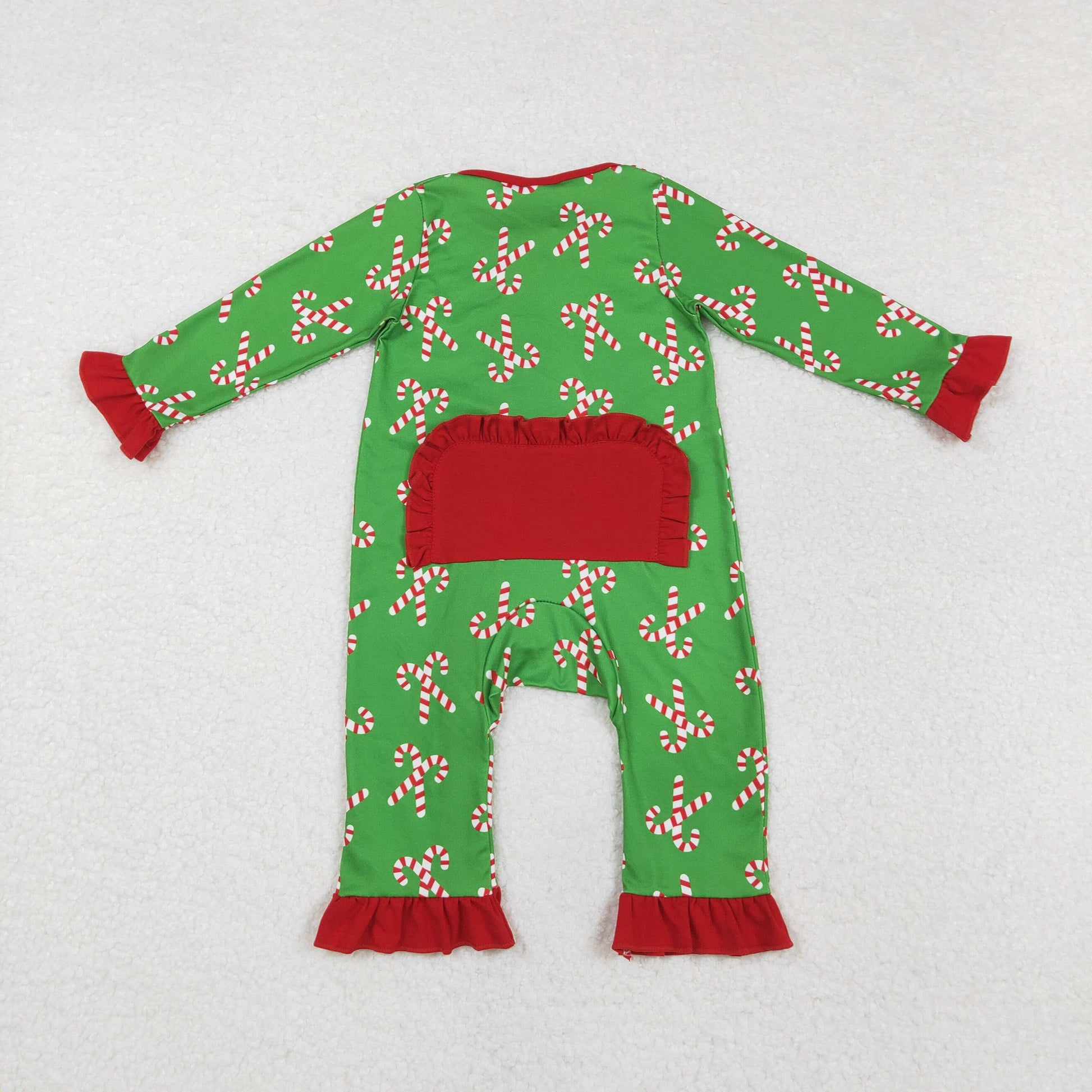 LR1236 Candy Cane Green Print Baby Girls Christmas Sleeper Zipper Romper