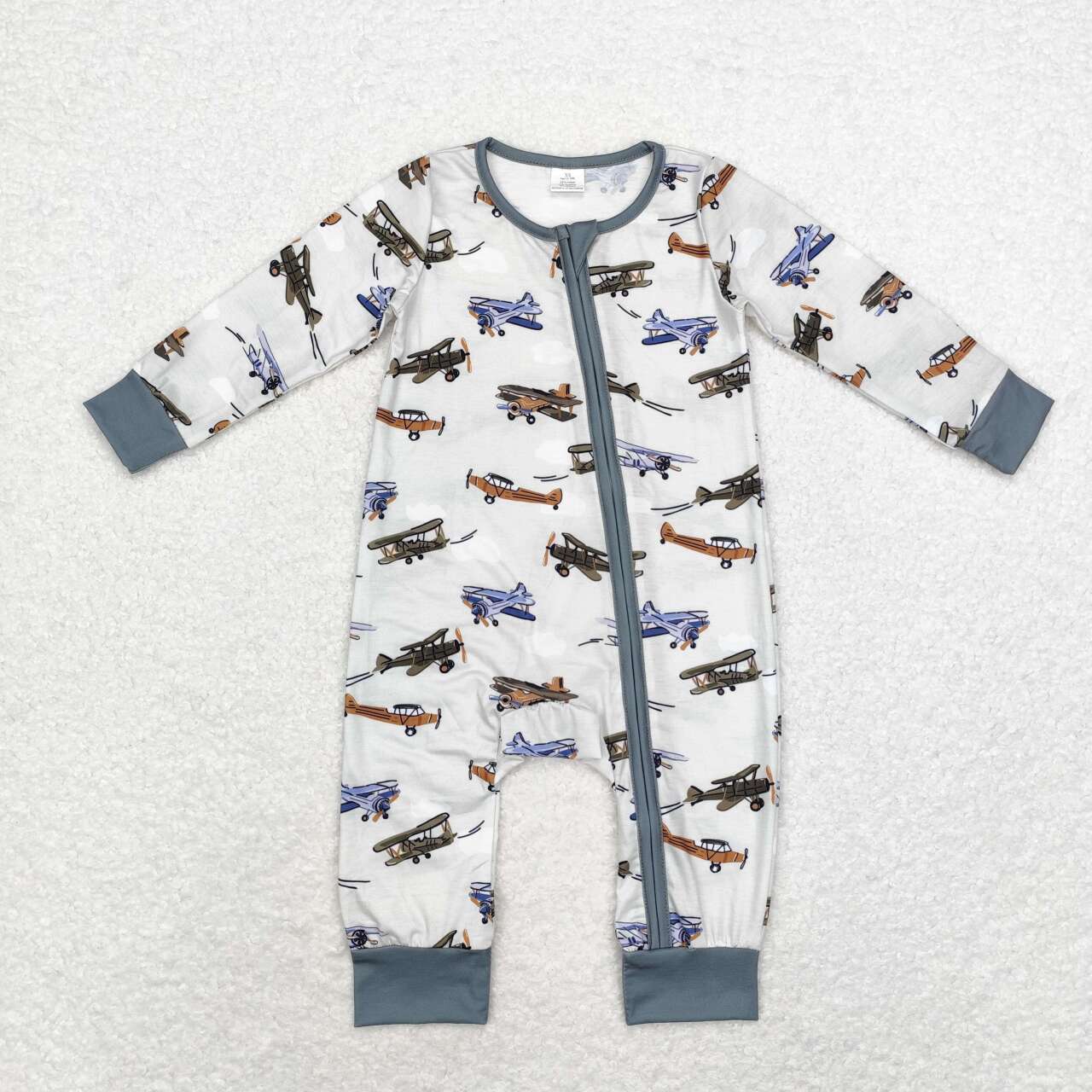 LR1326 Plane Print Baby Boys Fall Bamboo Sleeper Zipper Romper