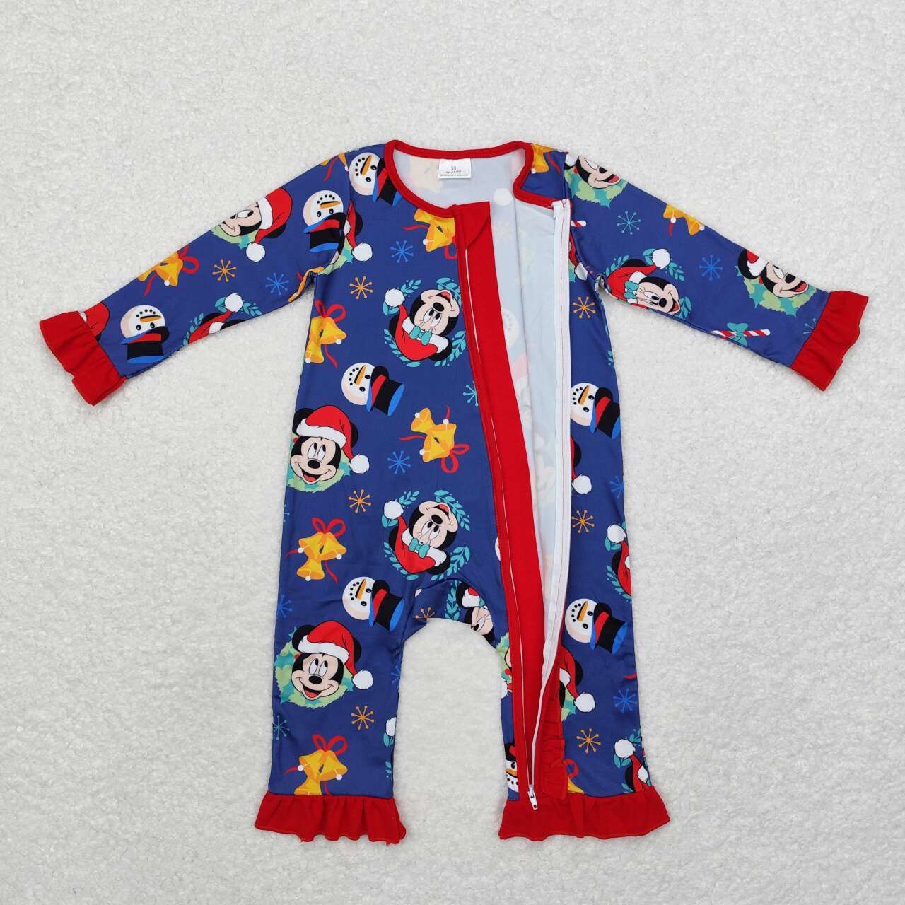 LR1416 Cartoon Mouse Print Baby Girls Christmas Sleeper Zipper Romper