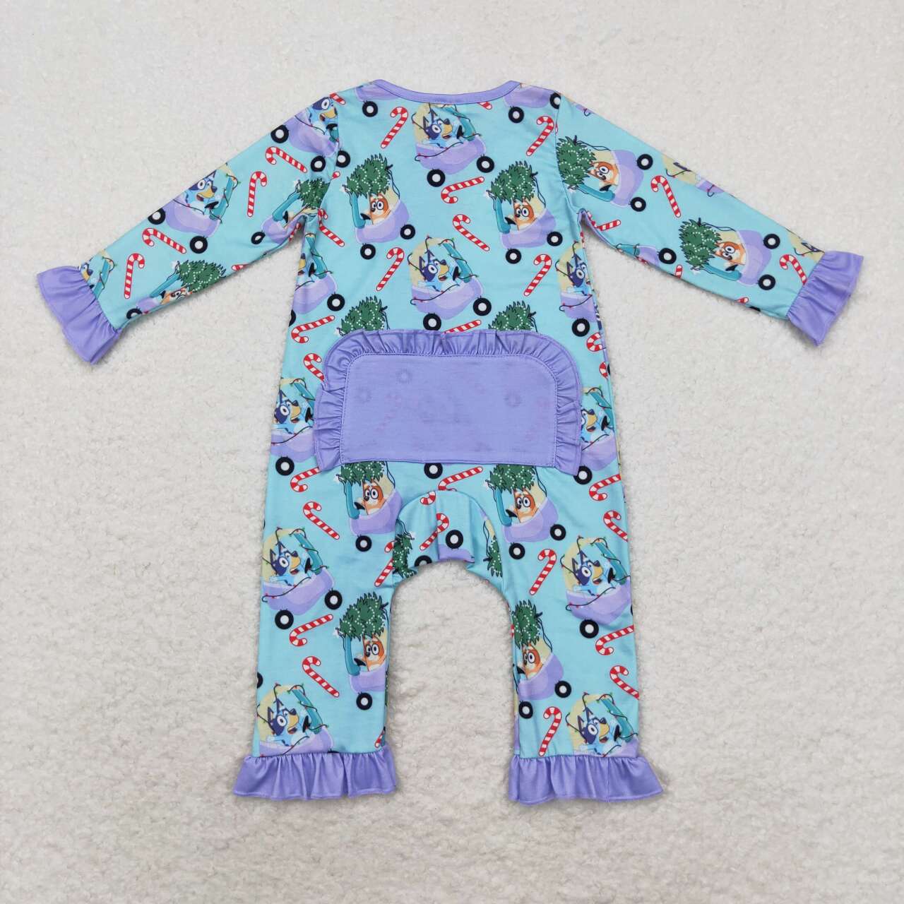 LR1419 Cartoon Dog Candy Cane Print Baby Girls Christmas Bambooo Sleeper Zipper Romper
