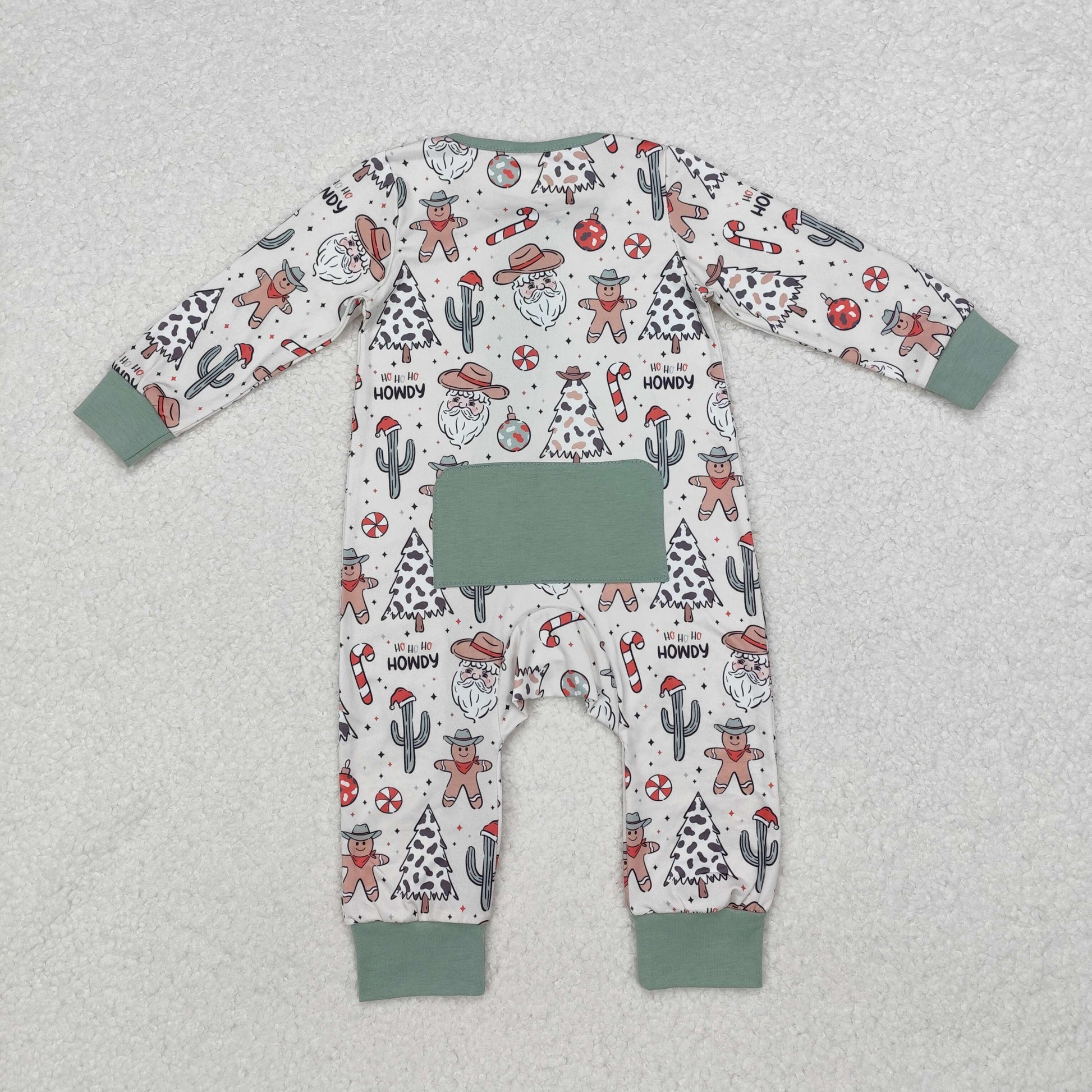 LR1674 Santa Western Print Baby Boys Christmas Sleeper Zipper Romper