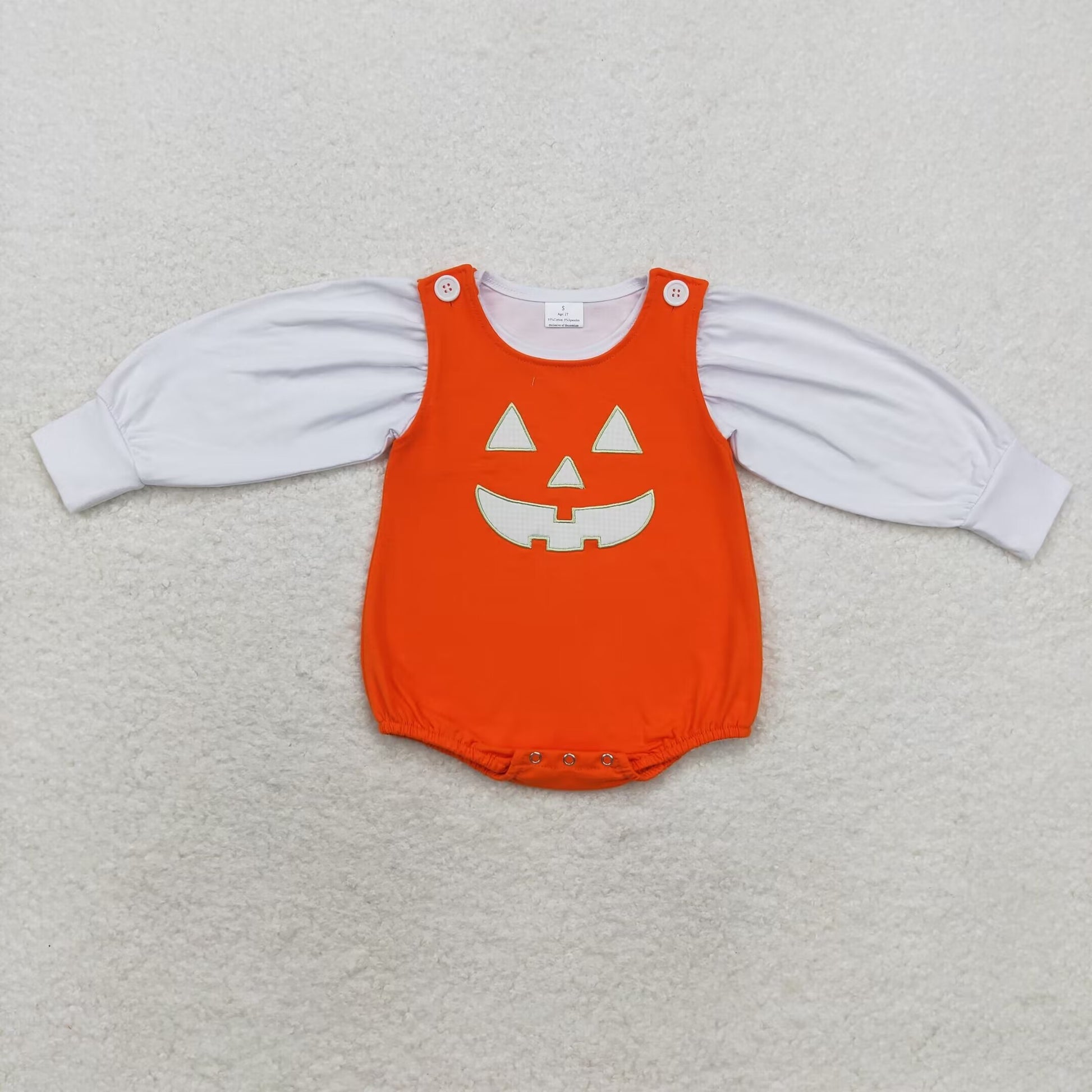 LR1702 White Top Ghost Face Embroidery Orange Romper Baby Girls 2 Pieces Halloween Clothes Set