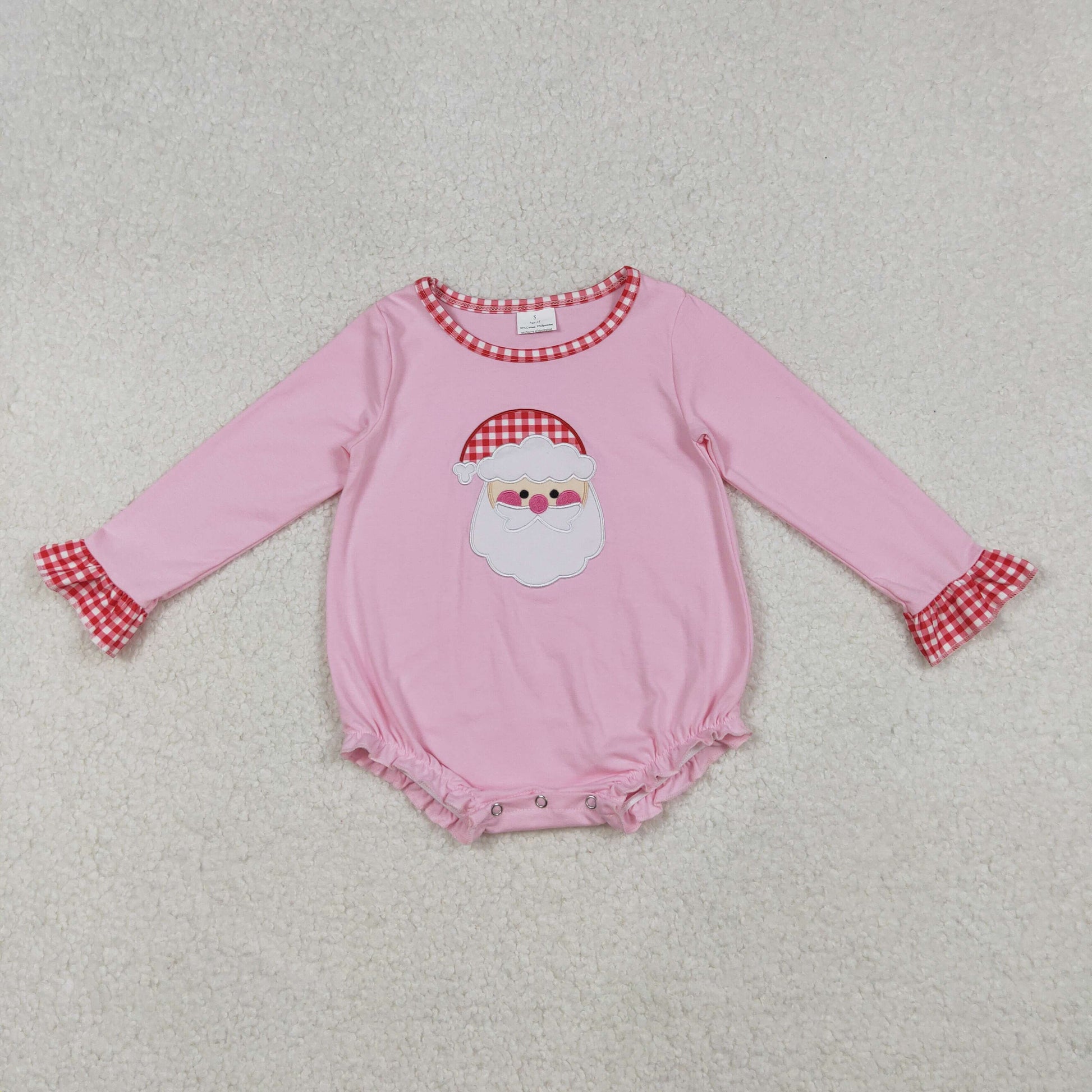 LR1733 Santa Embroidery Pink Baby Girls Christmas Bubble Romper