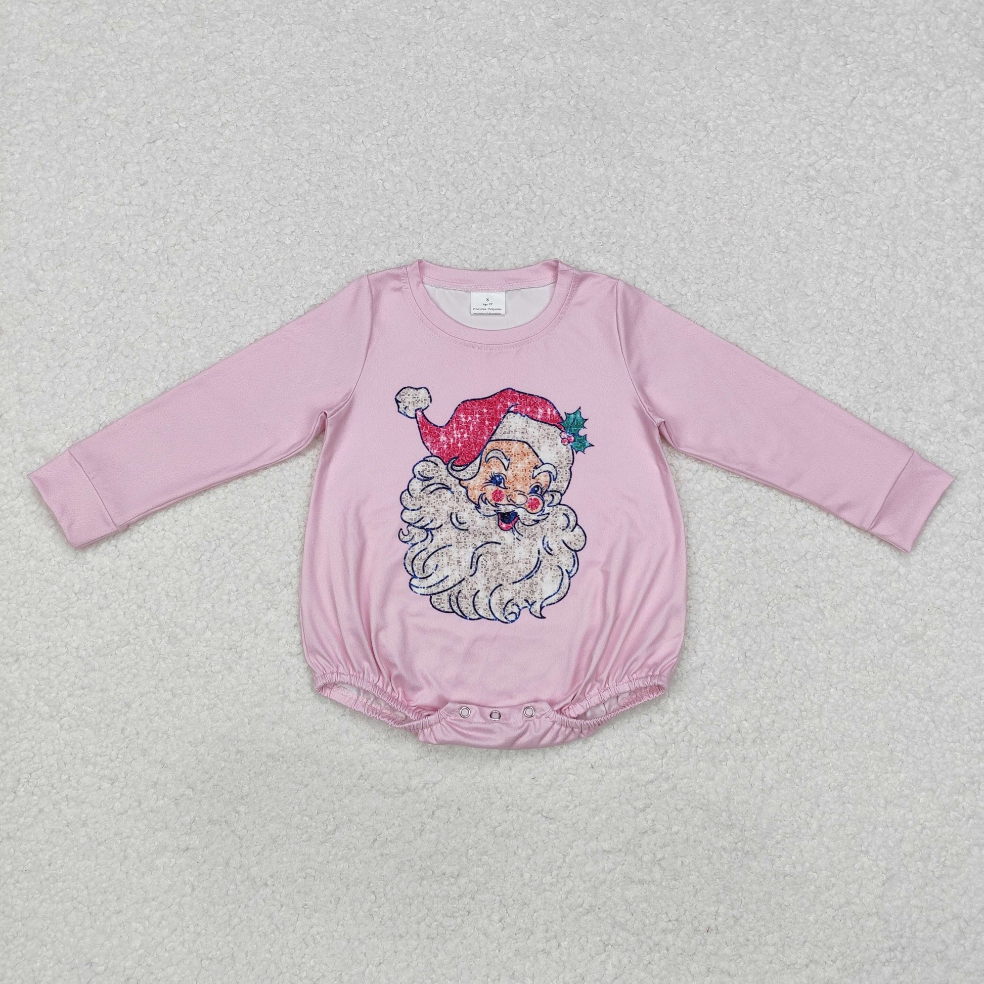 LR1819 Santa Pink Print Baby Girls Christmas Romper