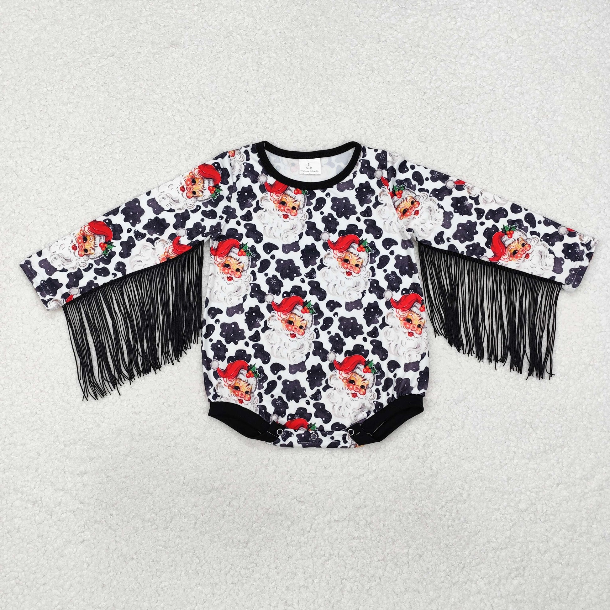 LR1827 Santa Print Baby Girls Christmas Western Tassel Romper