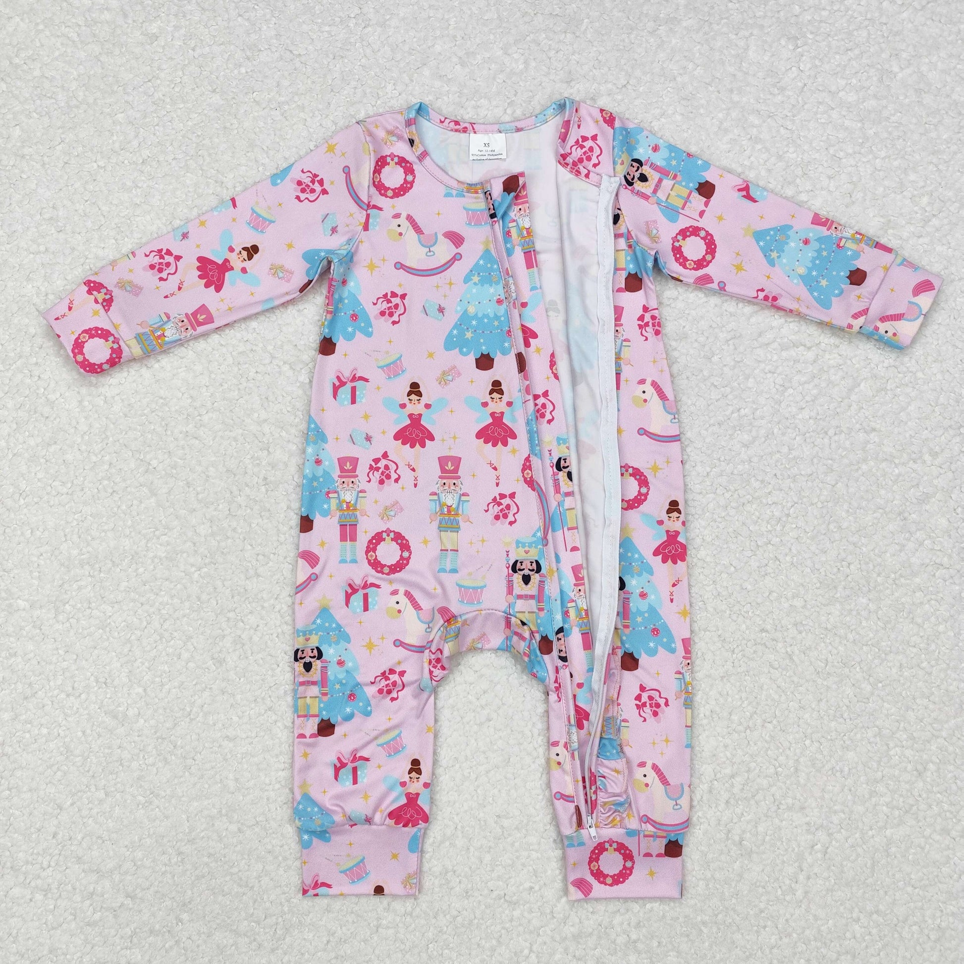 LR1970 Nutcracker Soldier Print Baby Girls Christmas Sleeper Zipper Romper