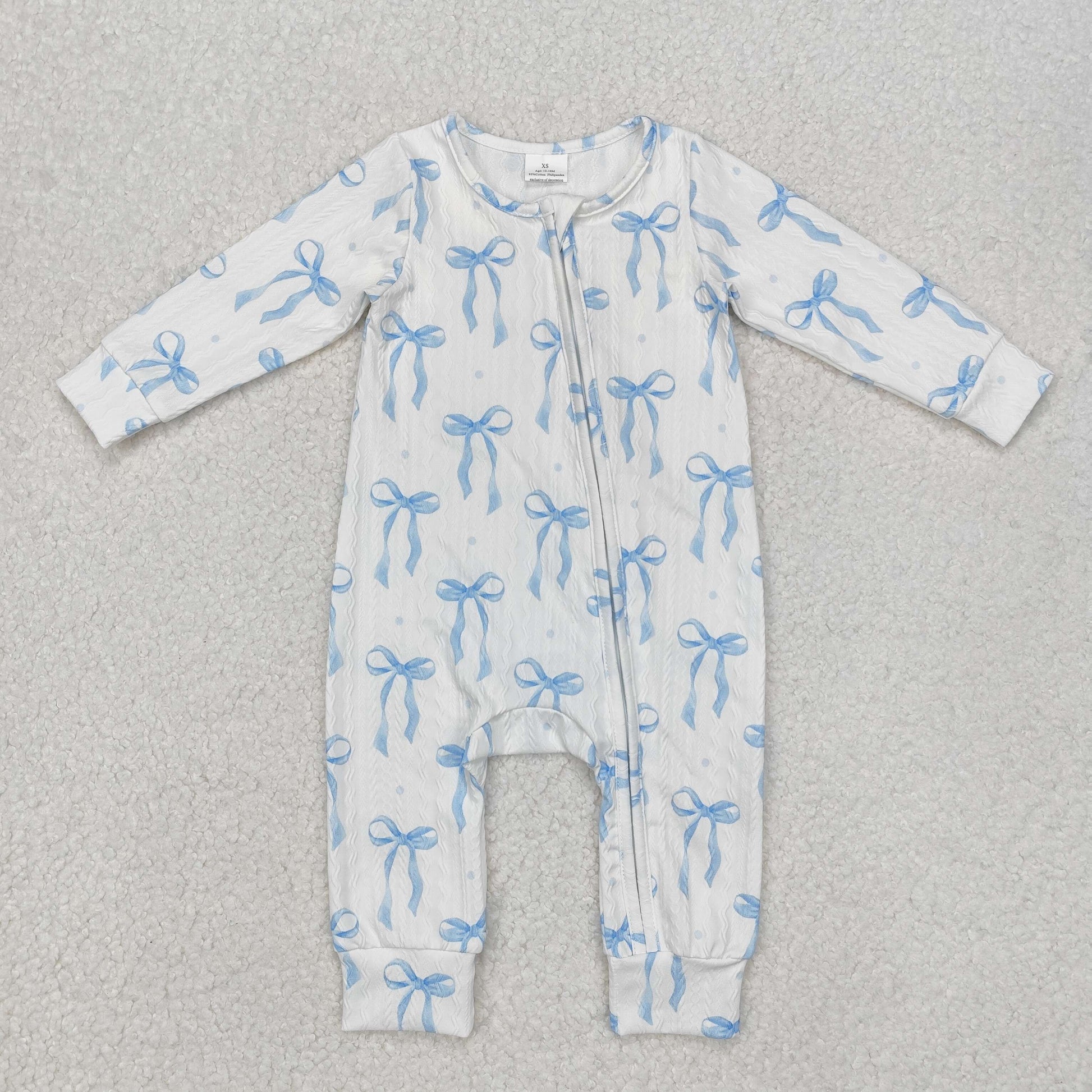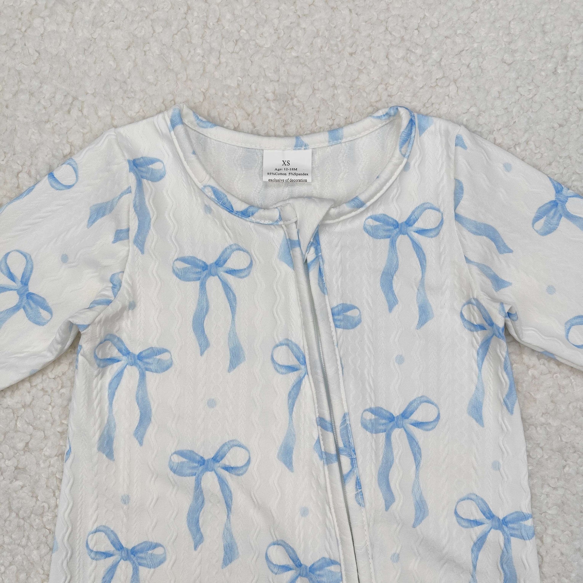 LR2070 Blue Bows Baby Girls Cable Knit Fabric Sleeper Zipper Romper