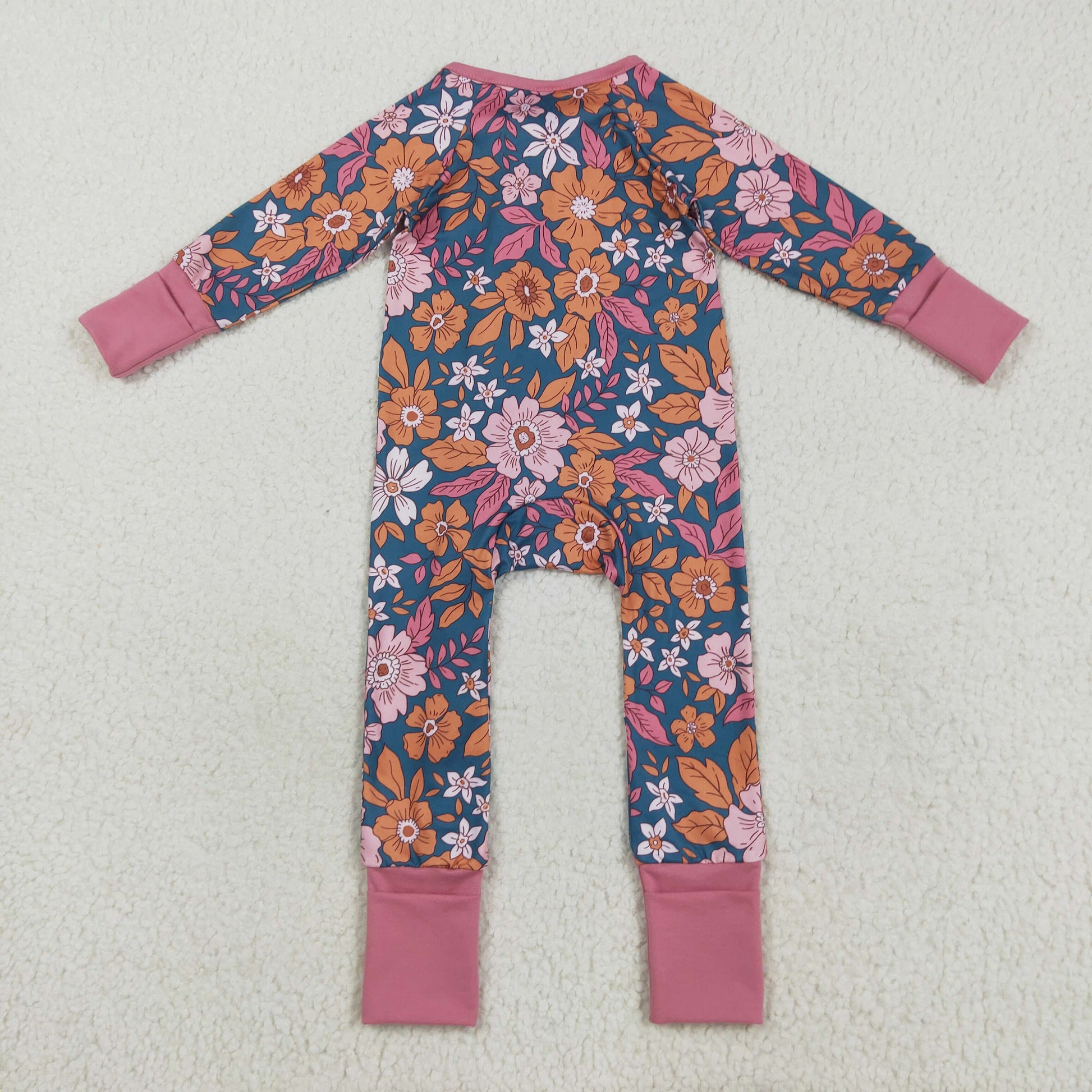 LR2244 Flowers Print Baby Girls Fall Zipper Sleeper Romper