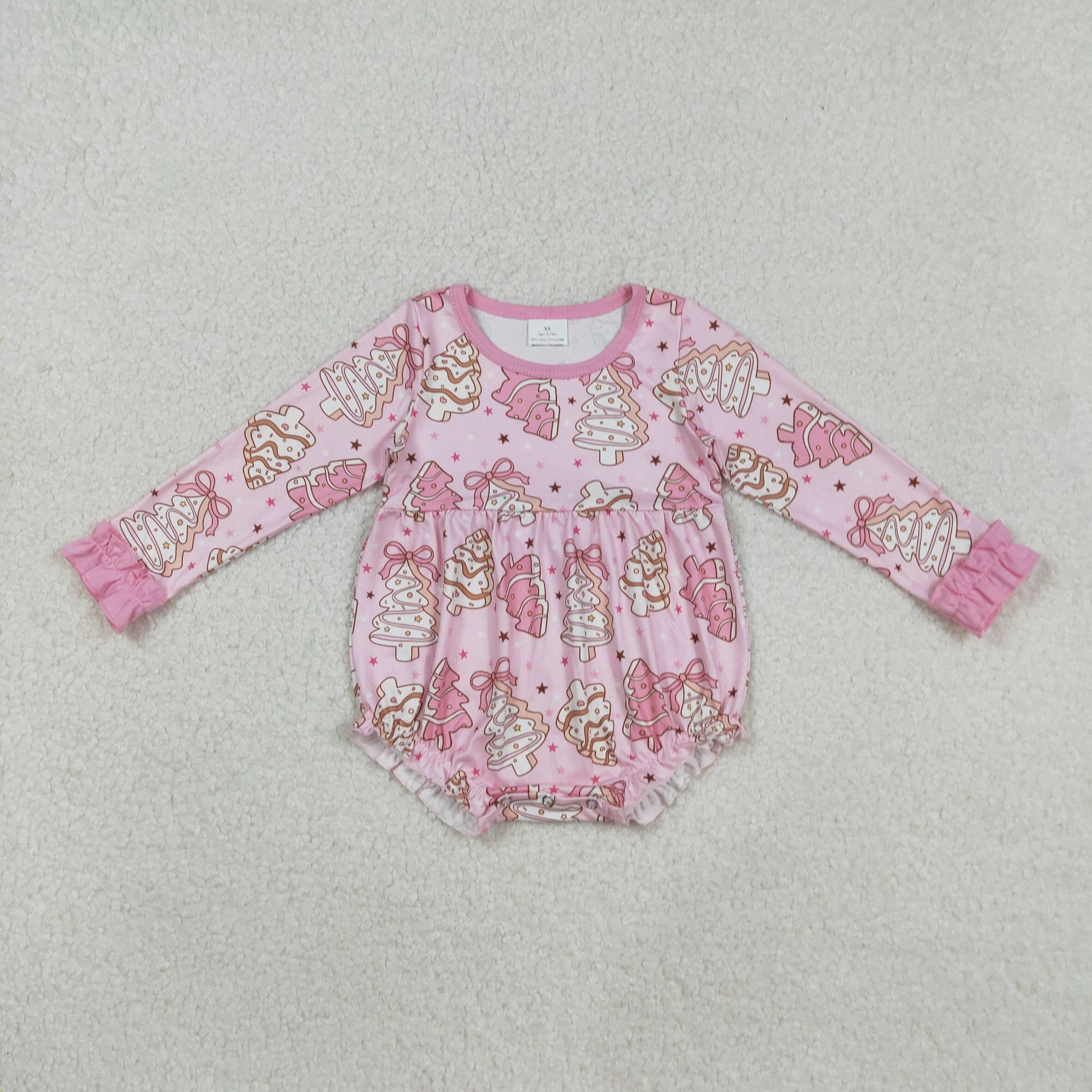 LR2301 Debbie Cake Bows Print Baby Girls Christmas Romper