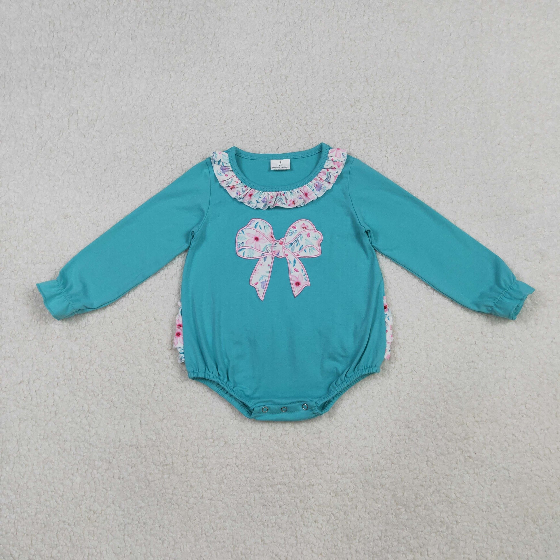 LR2432 Bows Embroidery Flowers Baby Girls Bubble Romper