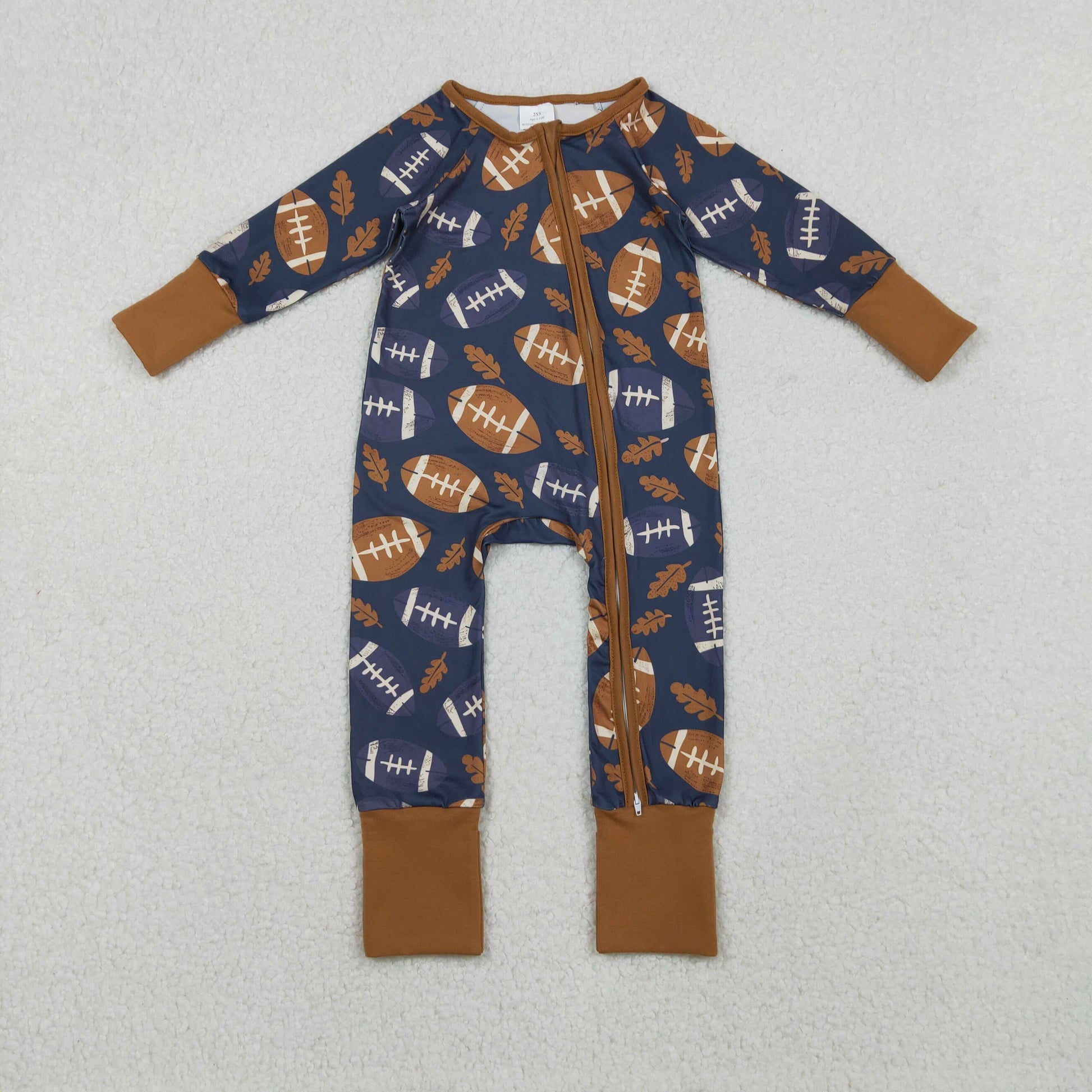 LR2543 Football Leaf Print Baby Boys Fall Zipper Sleeper Romper