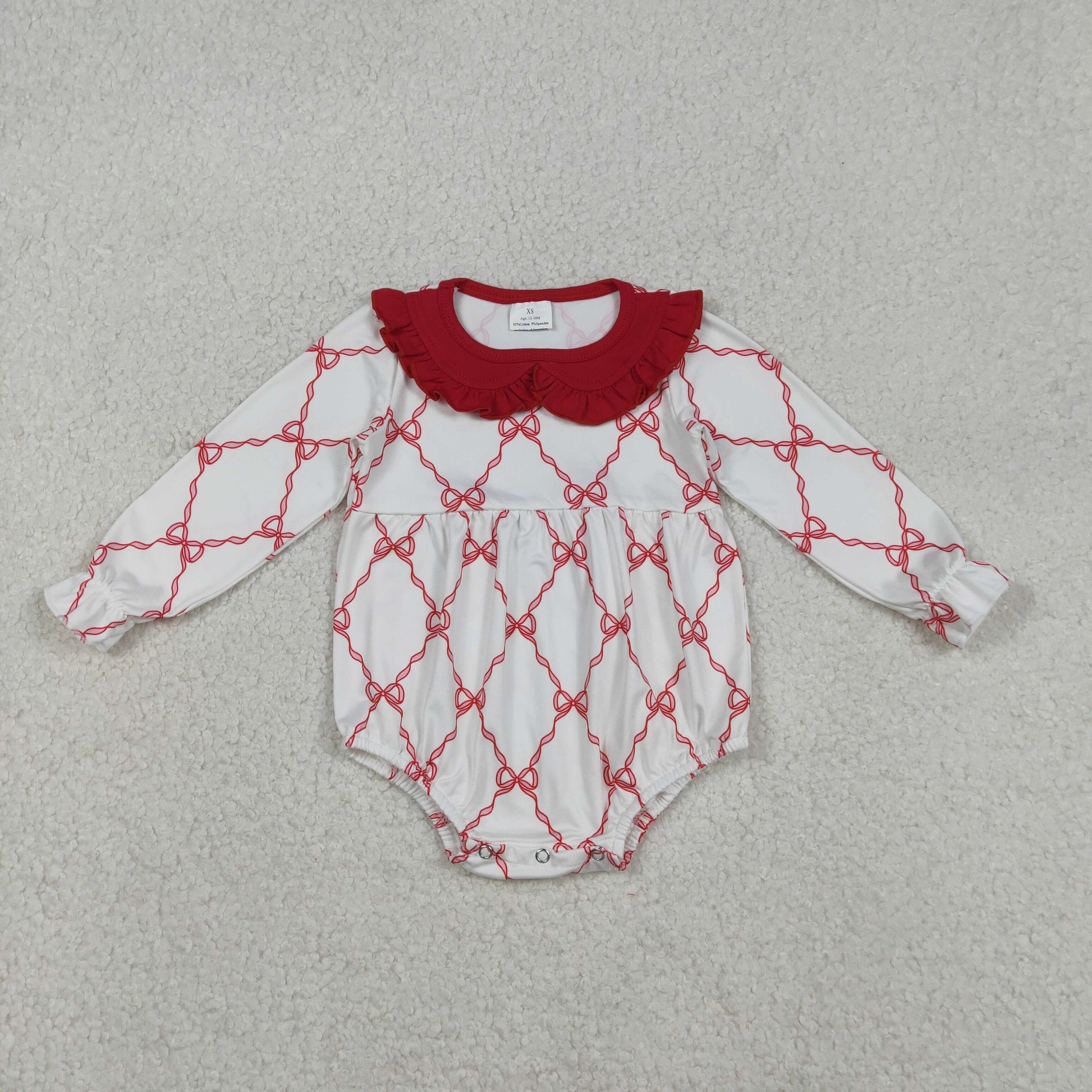 LR2725 Red Bows Print Baby Girls Bubble Romper