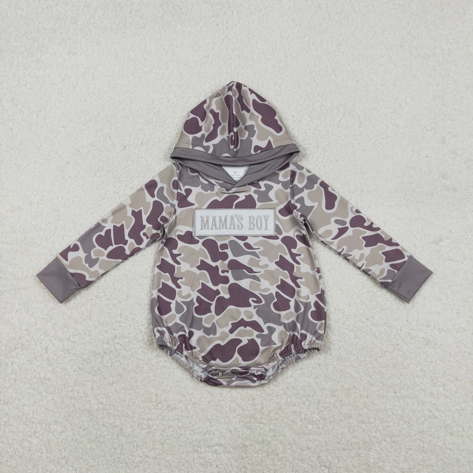 LR2792 MAMA'S BOY Embroidery Camo Print Baby Boys Hoodie Romper