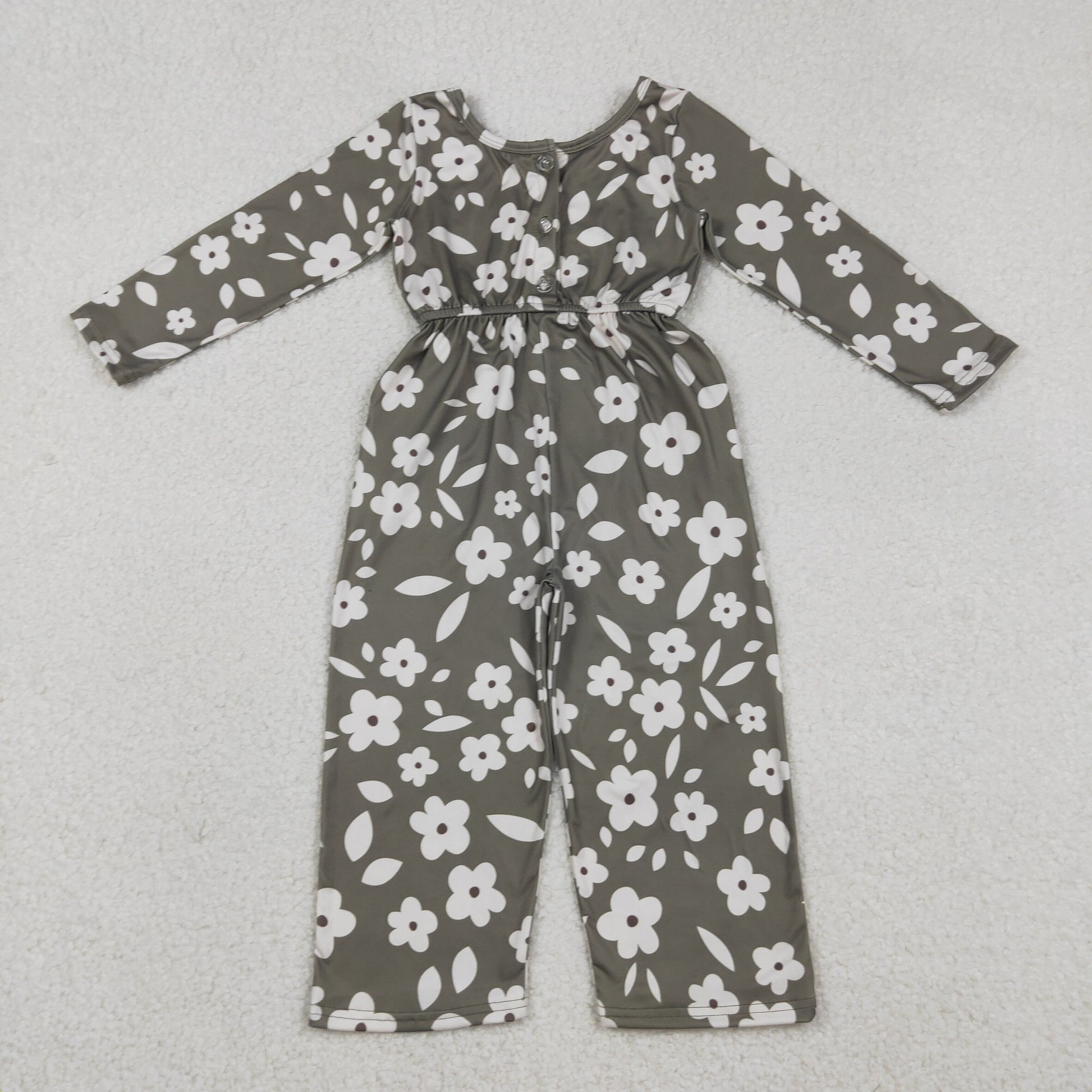 LR2828 Grey Flowers Print Girls Pockets Jumpsuits
