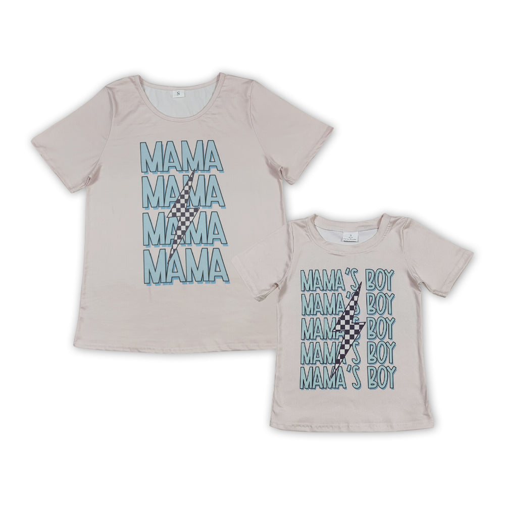MAMA & Boy Falsh Print Mom and Me Summer Tee Shirts Top