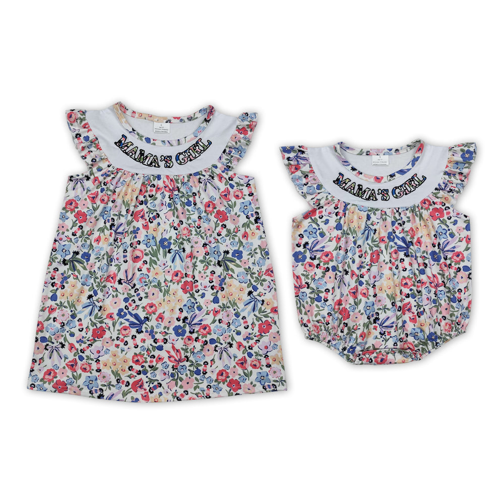 MAMA'S Girl Embroidery Flowers Print Sisters Matching Clothes